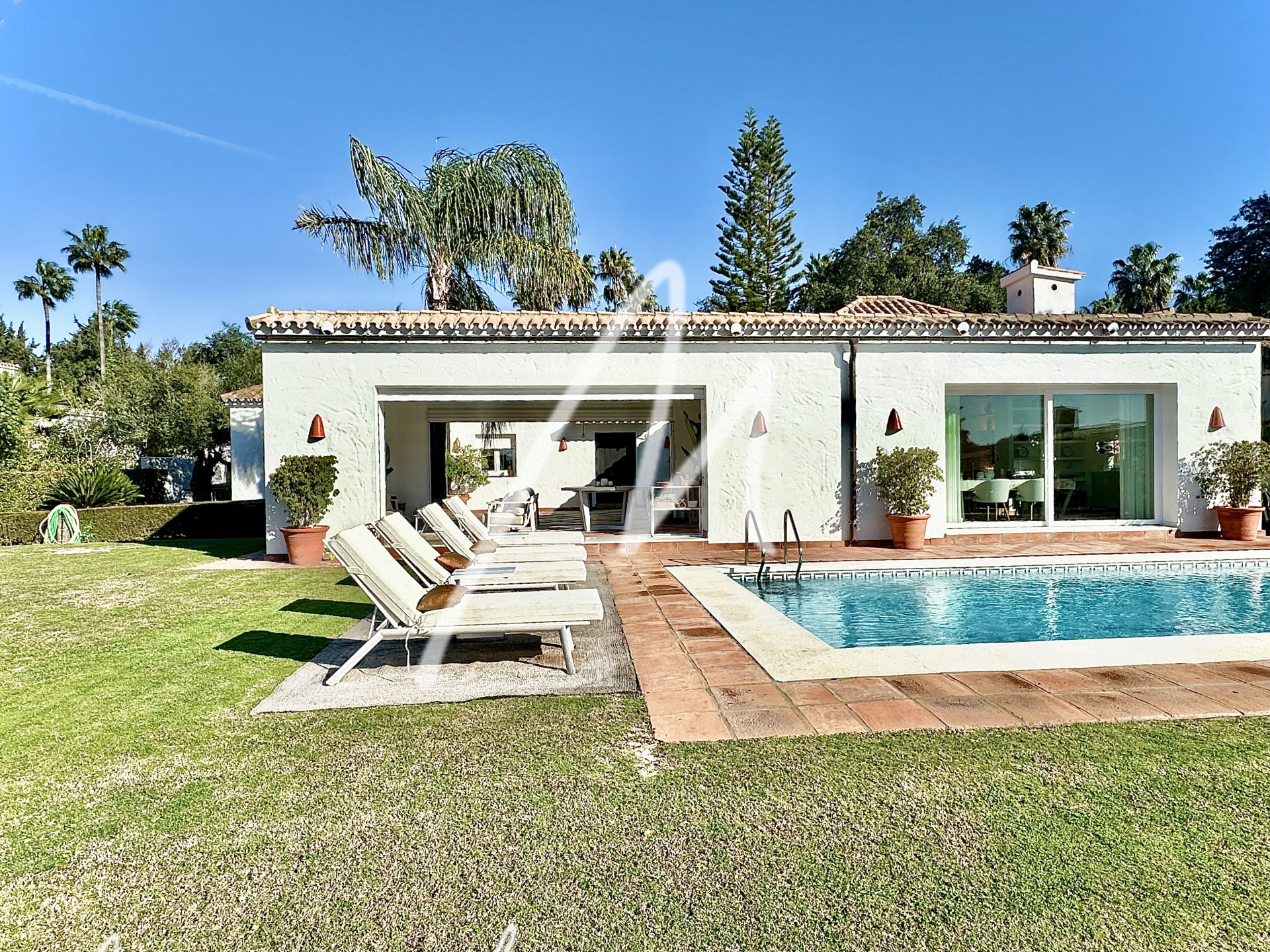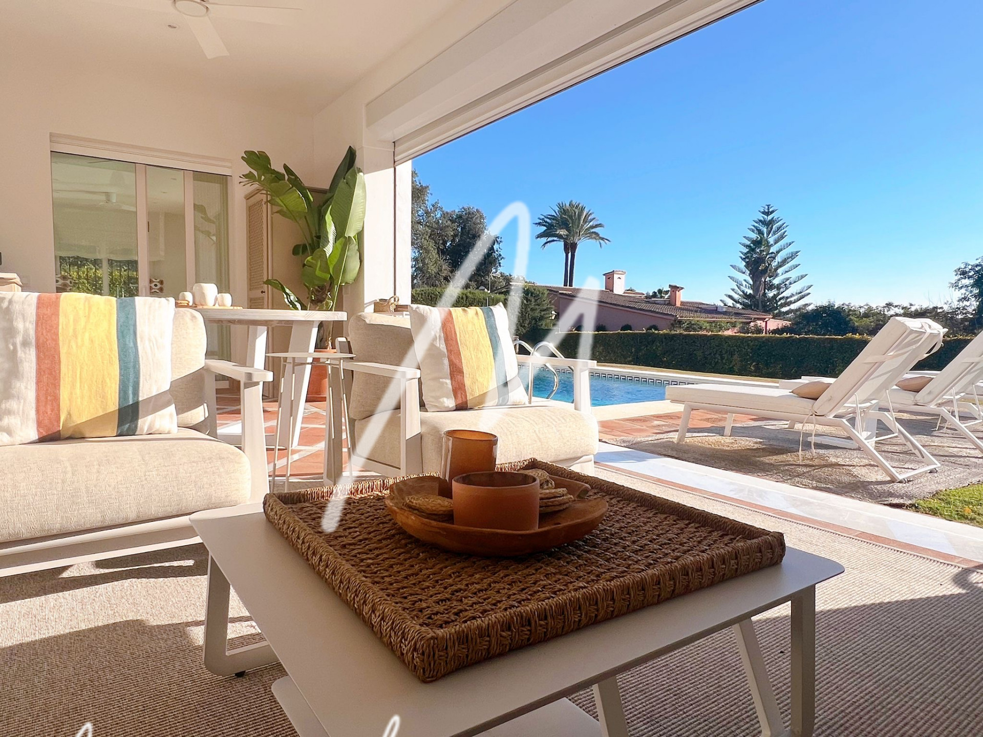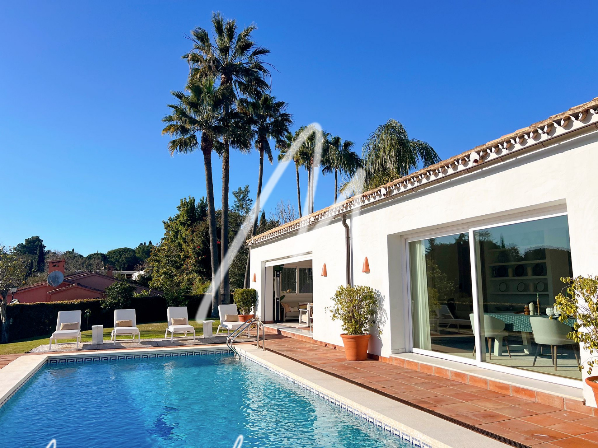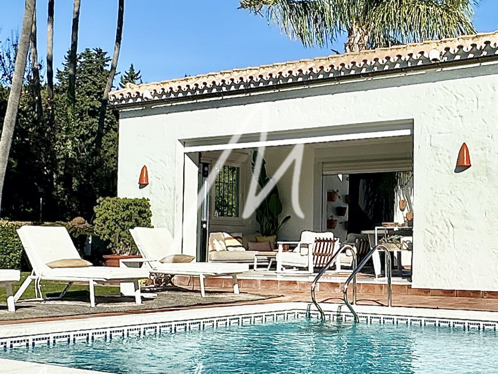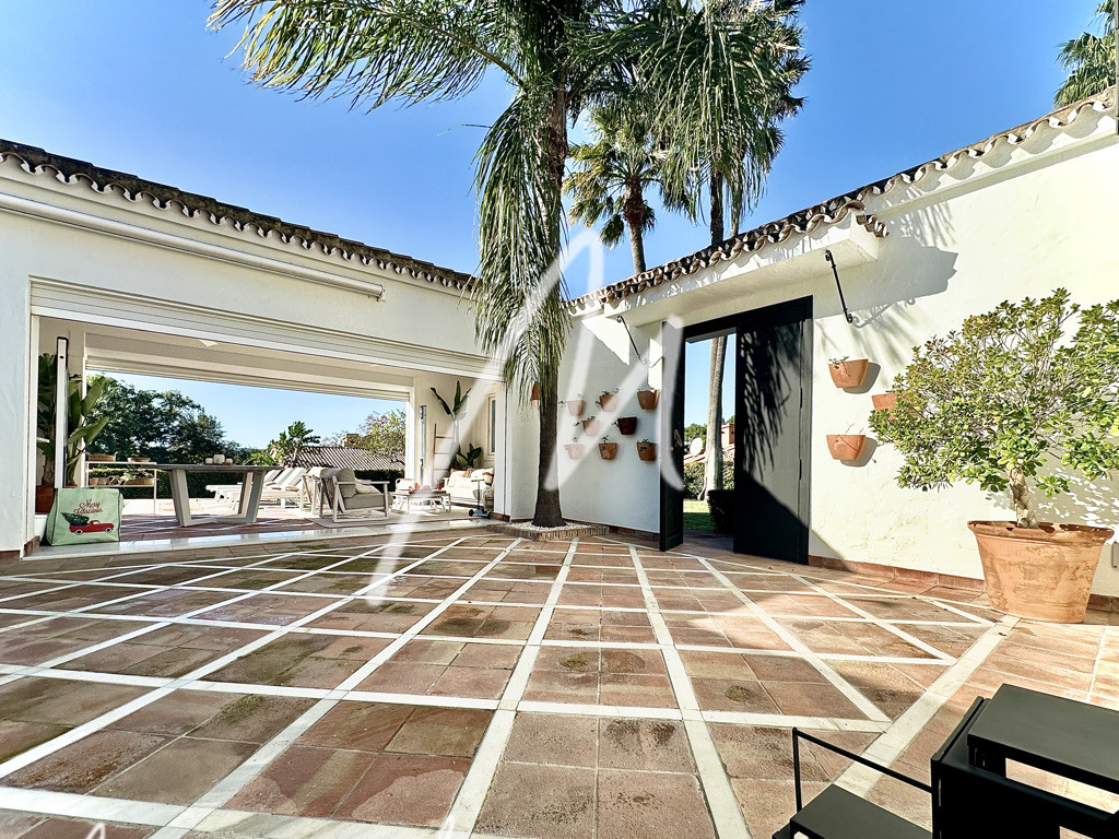 The Villa is located on an elevated plot with open views. The property has the traditional Andalusian character, offering an idyllic setting, newly renovated with luxury, modernity, and comfort. Located in the Triana Villas Urbanization, just 3 minutes from Valderrama and La Reserva de Sotogrande, 4 minutes to Supermercado El Corte Inglés and only 5 minutes from the beach and Bunker, 7 minutes to Trocadero and the Racket Centre, much closer than from many points in Sotogrande Costa.