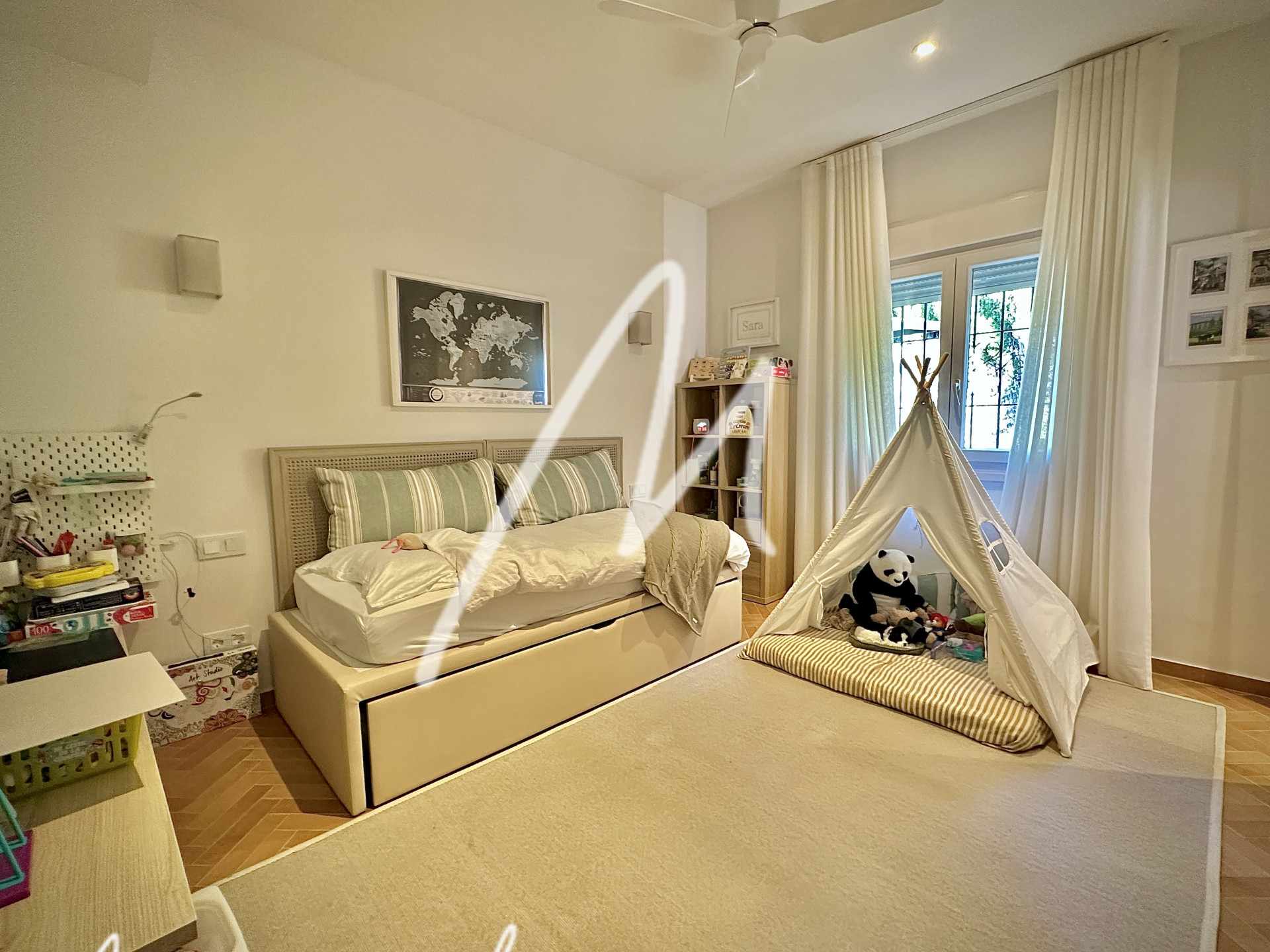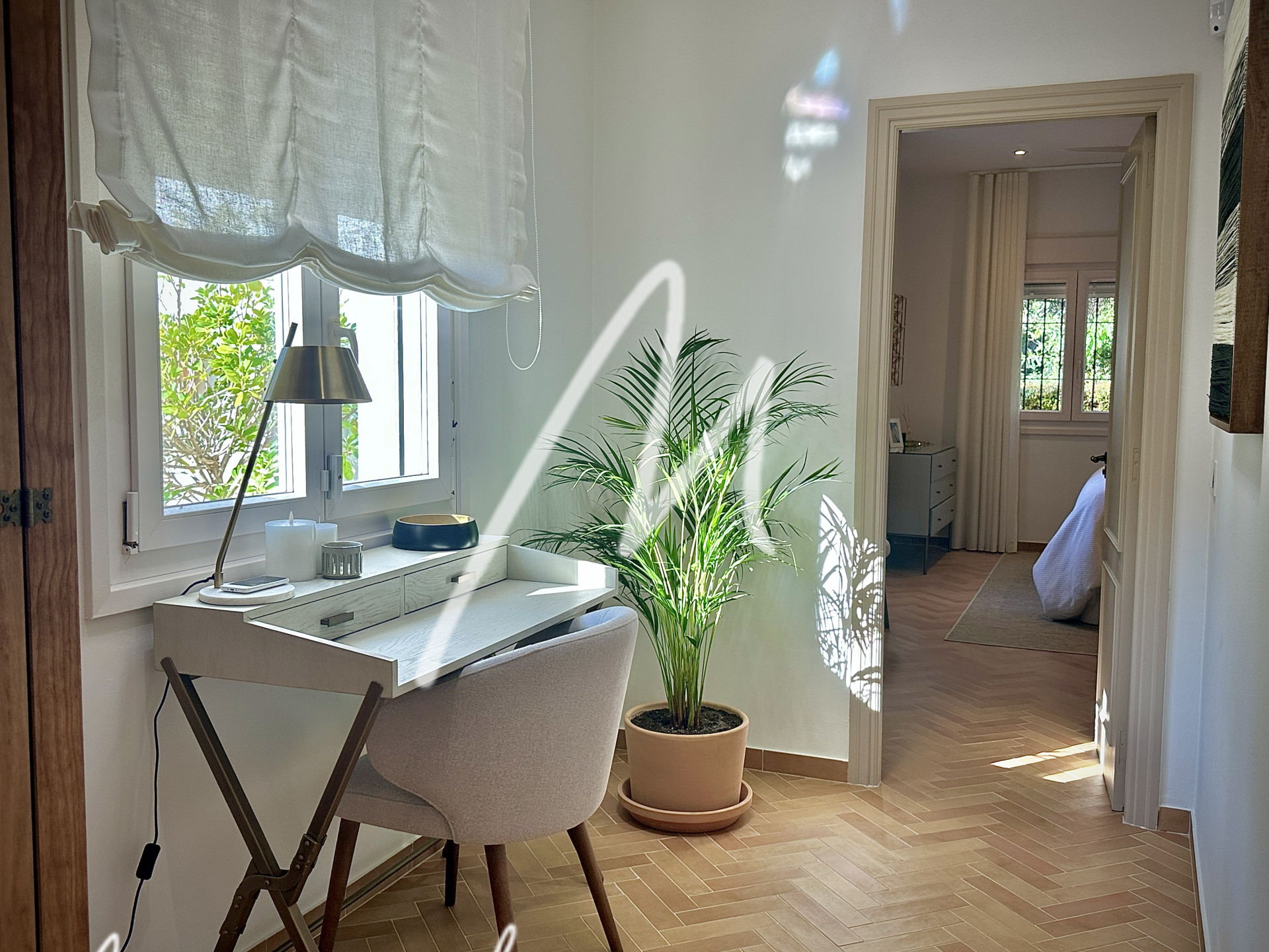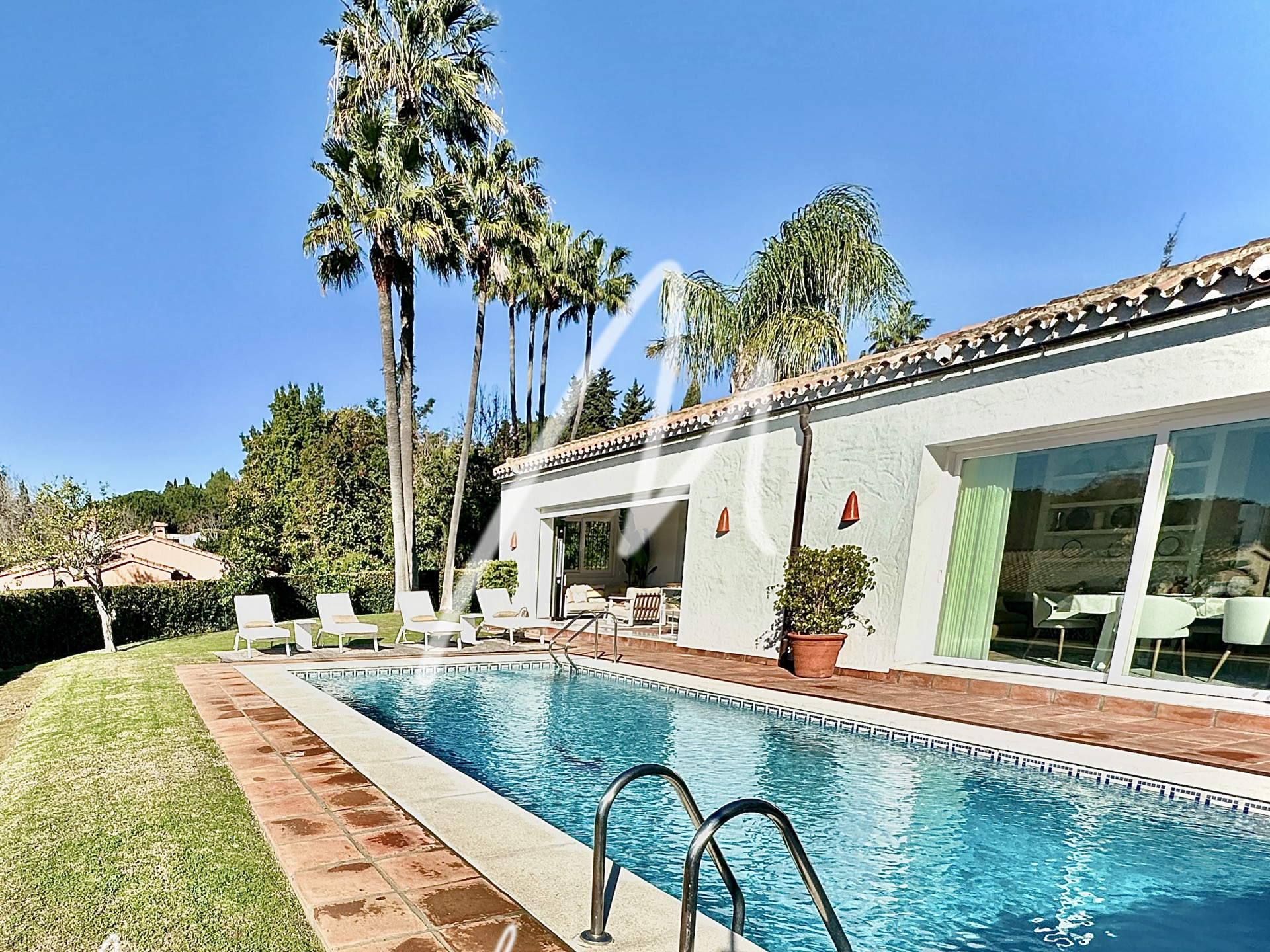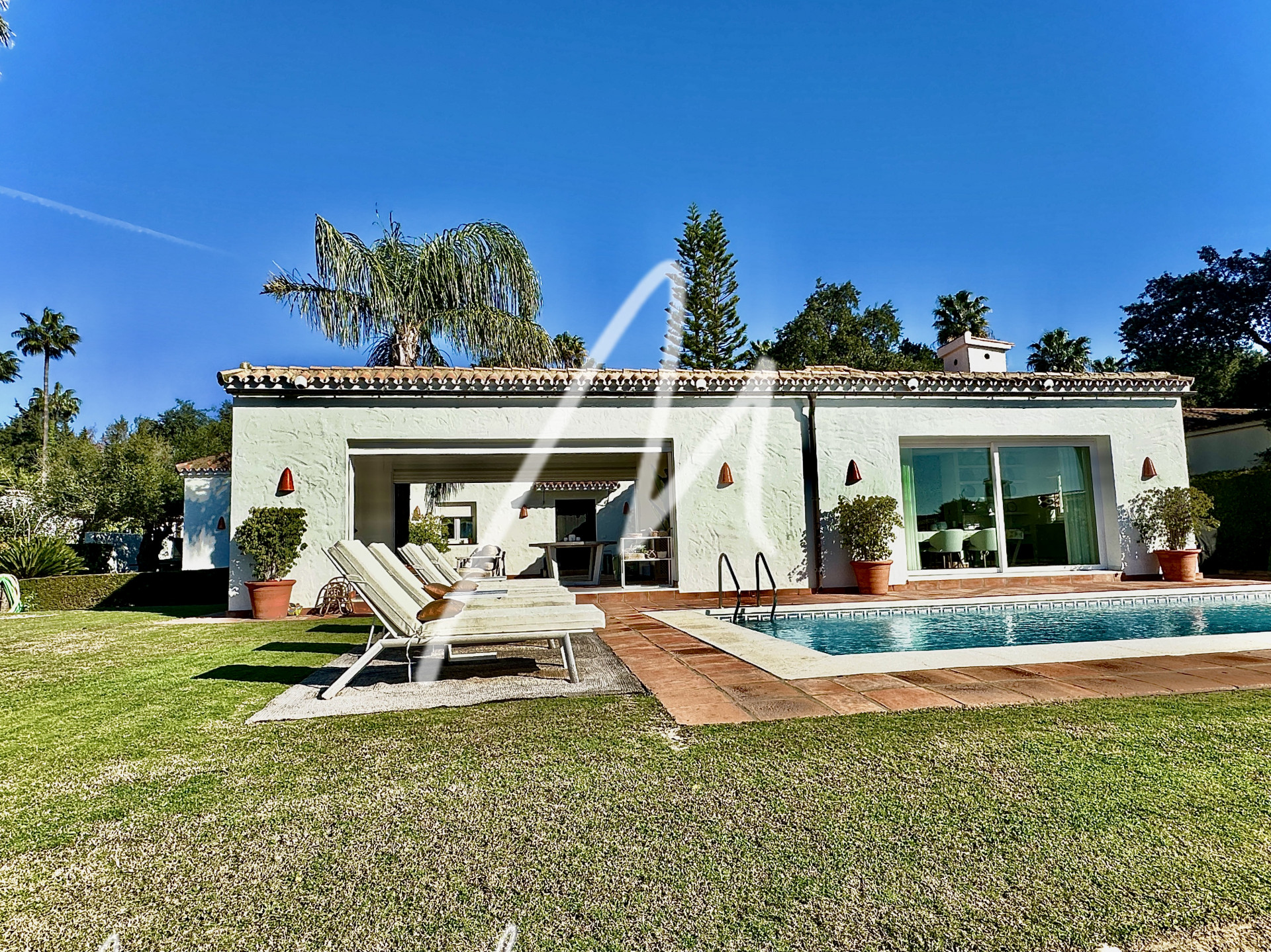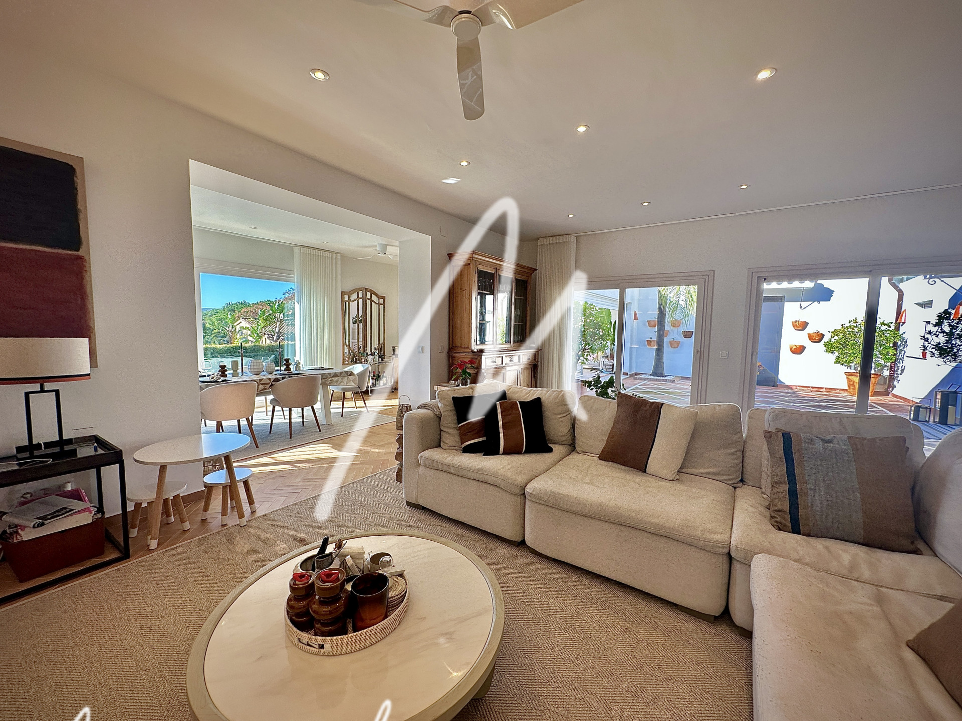 The Villa is located on an elevated plot with open views. The property has the traditional Andalusian character, offering an idyllic setting, newly renovated with luxury, modernity, and comfort. Located in the Triana Villas Urbanization, just 3 minutes from Valderrama and La Reserva de Sotogrande, 4 minutes to Supermercado El Corte Inglés and only 5 minutes from the beach and Bunker, 7 minutes to Trocadero and the Racket Centre, much closer than from many points in Sotogrande Costa.