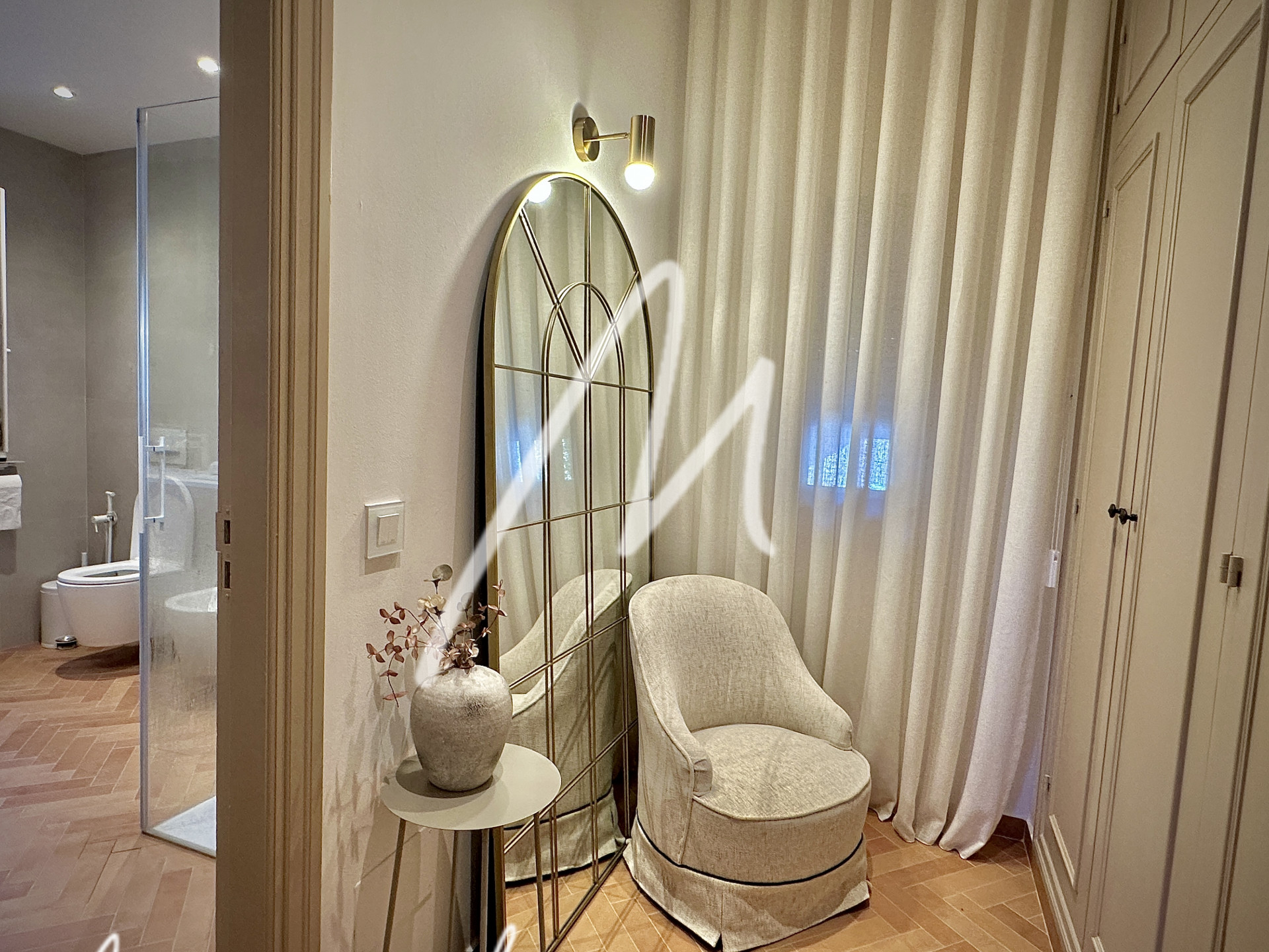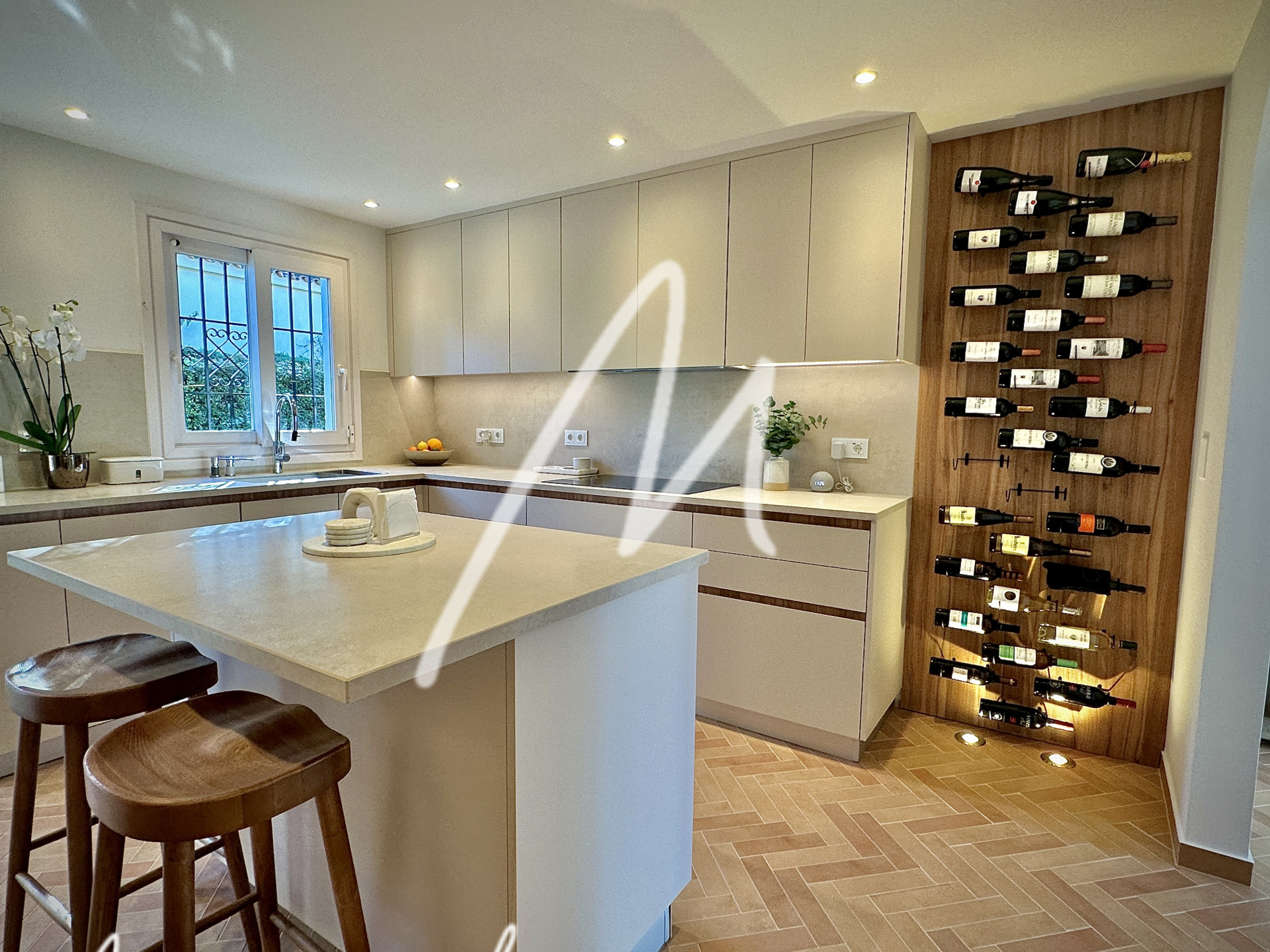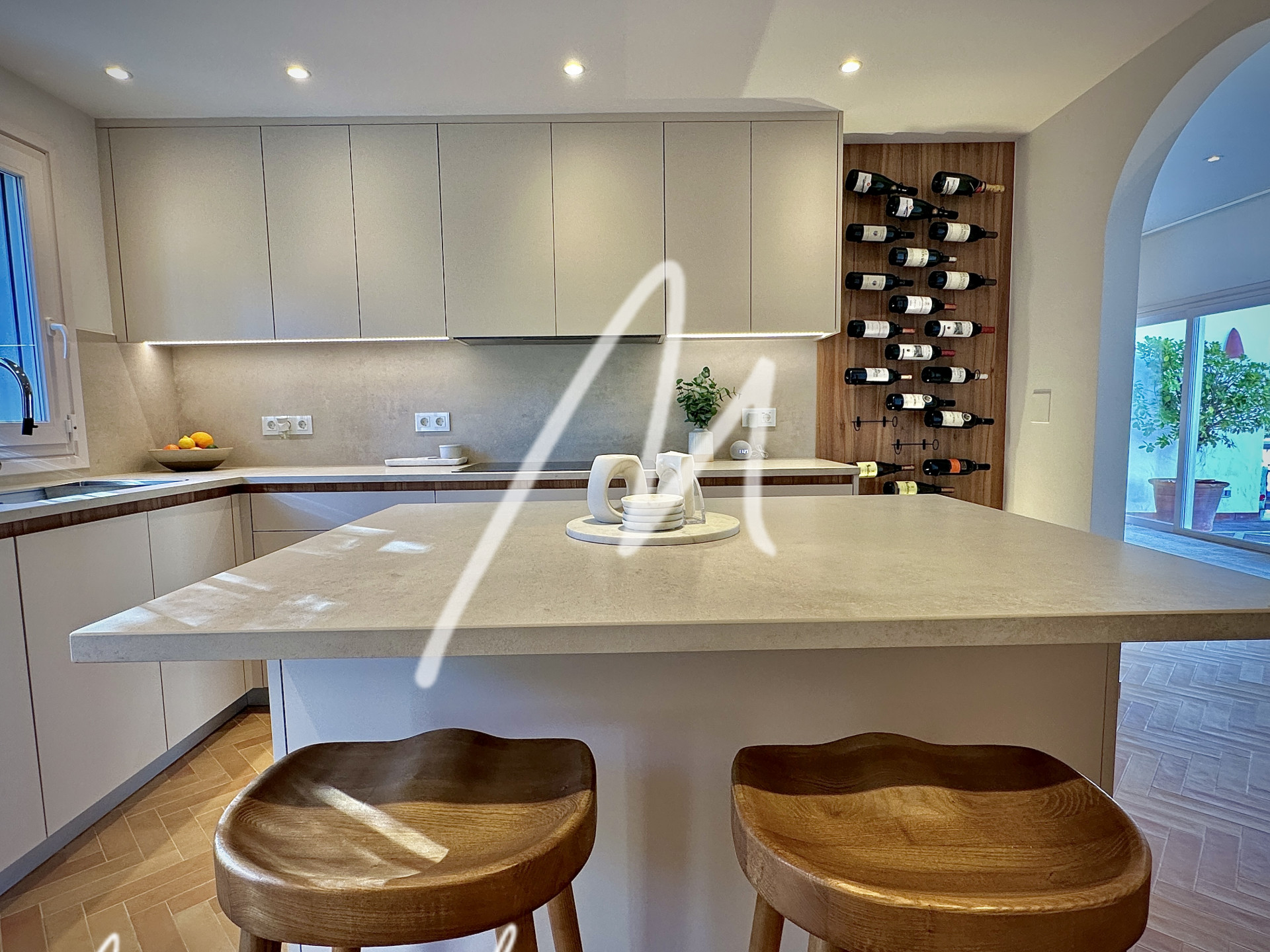 The terrace area features an additional refrigerator, bar area, and awning for the summer dining area in the inner courtyard. The house has air conditioning with an airzone system to each bedroom and living room, as well as silent Faro fans in all rooms including the pool porch.