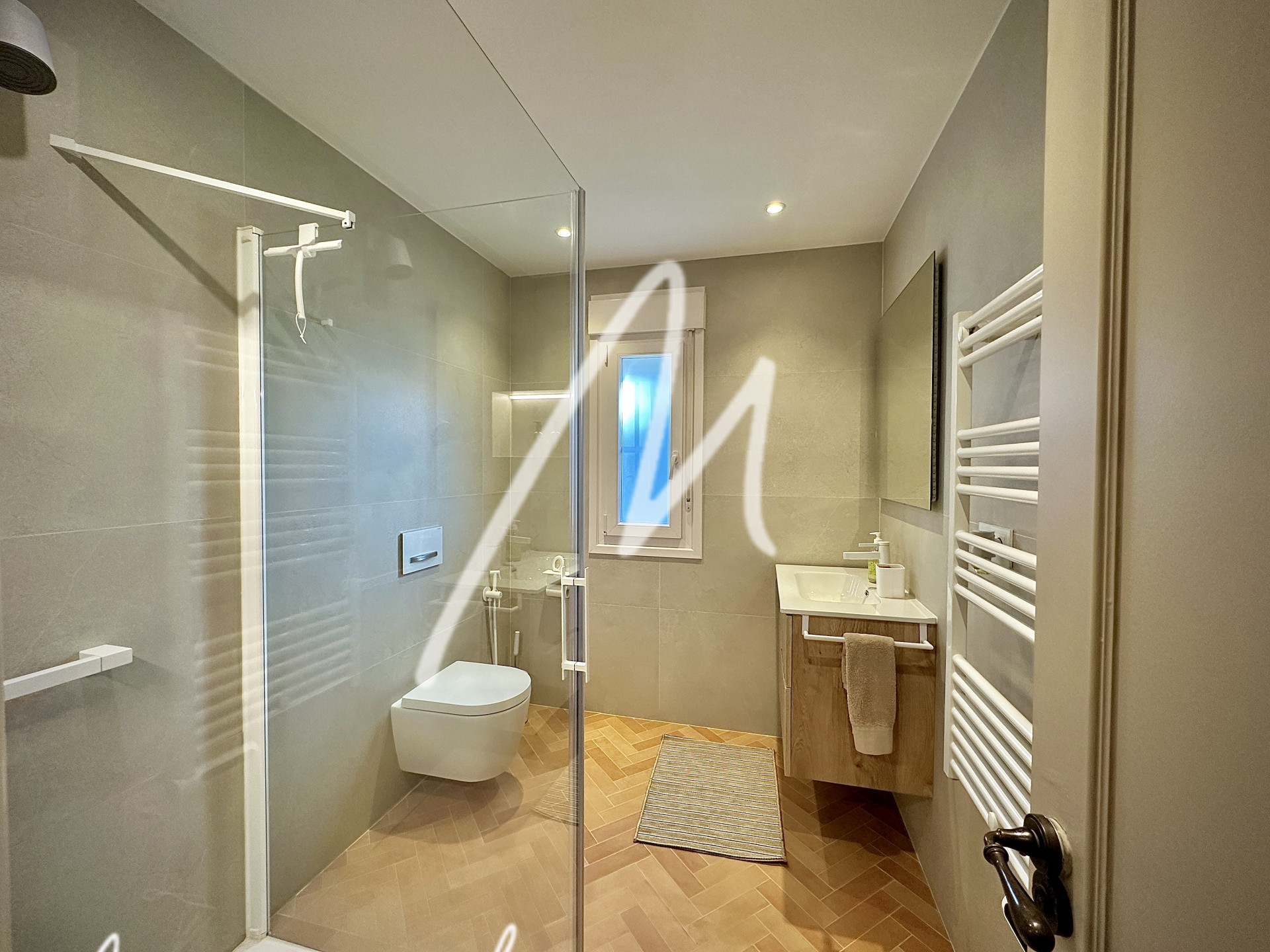The bathrooms have been upgraded to include large-format ceramic tiled walls, high-quality Hans-Grohe fittings and Duravit sanitary ware with excellent storage.
