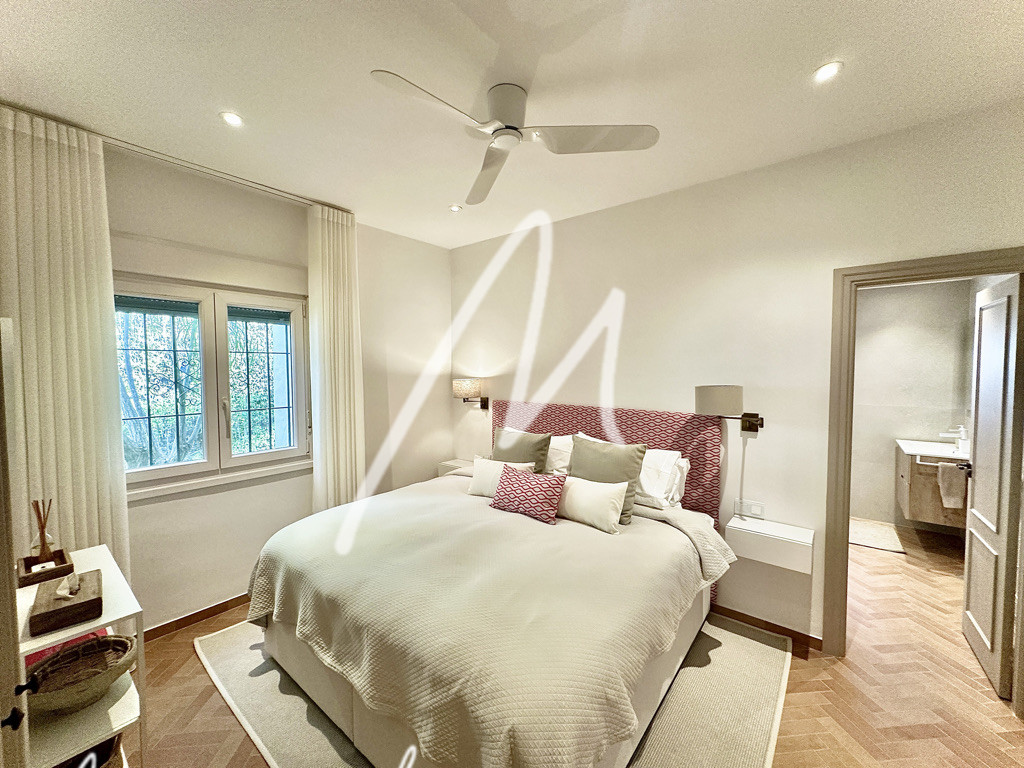 The villa has a spacious and functional layout that includes four bedrooms, each with its own en-suite bathroom, plus an additional guest toilet. The large living room is connected to the modern kitchen and the bright dining room opens onto the pool area and the central patio, allowing you to enjoy various settings in the sun or cool shade, as you prefer, making the most of the pleasant, very private garden, south-facing with open views, enjoying sunlight all day over the garden and pool.