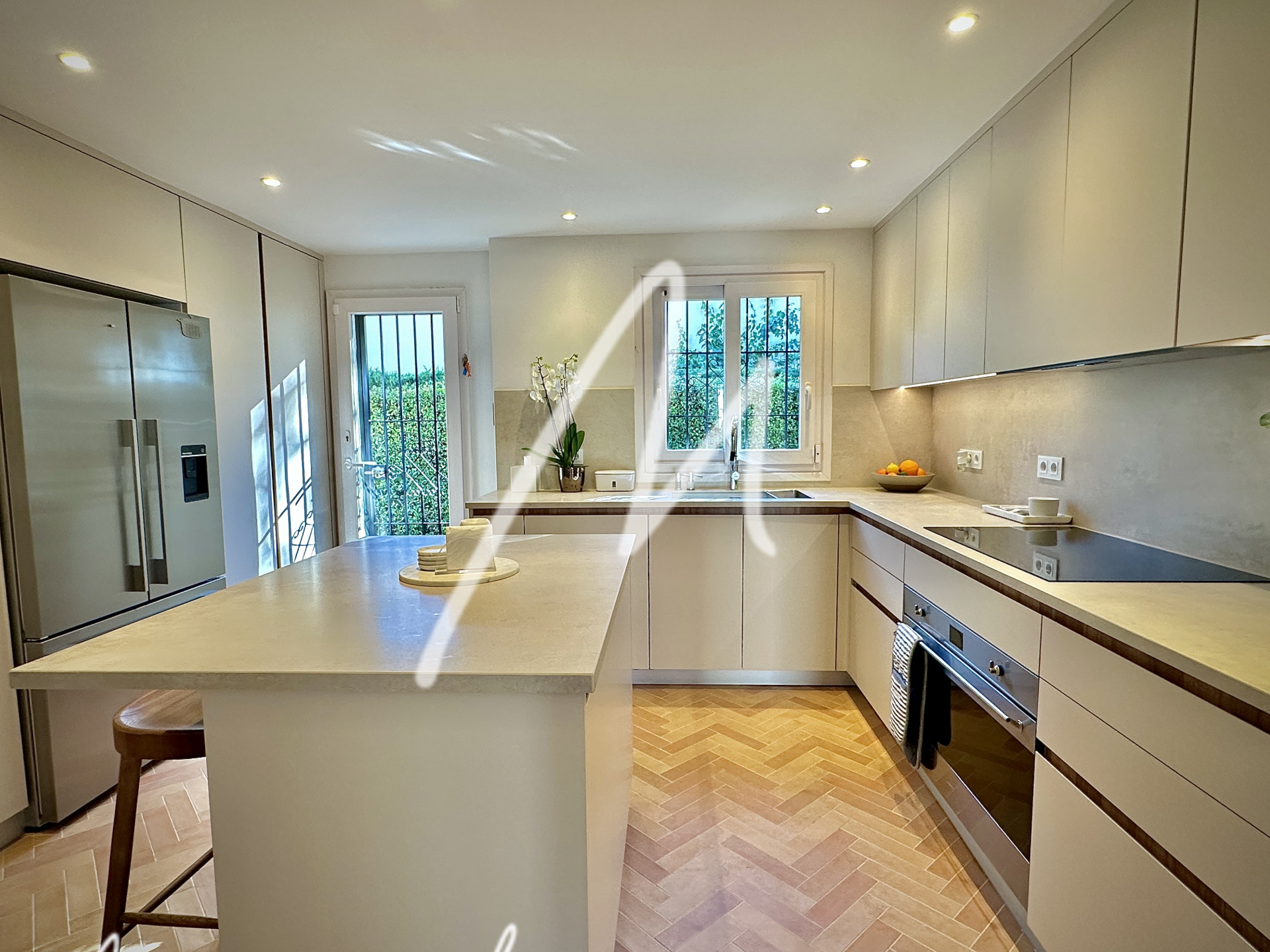 The kitchen equipped with a Miele dishwasher, a Fisher & Paykel American-style refrigerator, 90 cm wide Miele induction hob and Smeg oven, central island, Quooker instant boiling water tap and the laundry room has ample storage – and offers Miele washer and dryer.