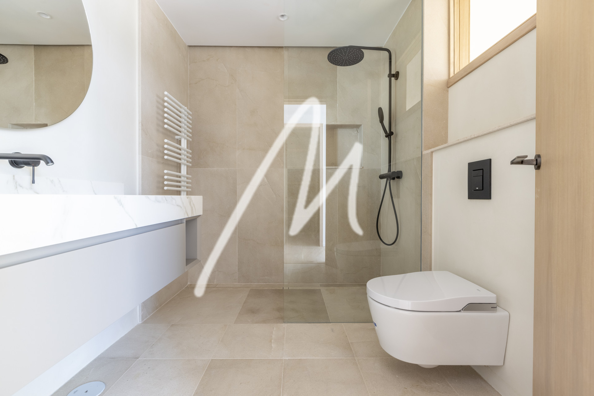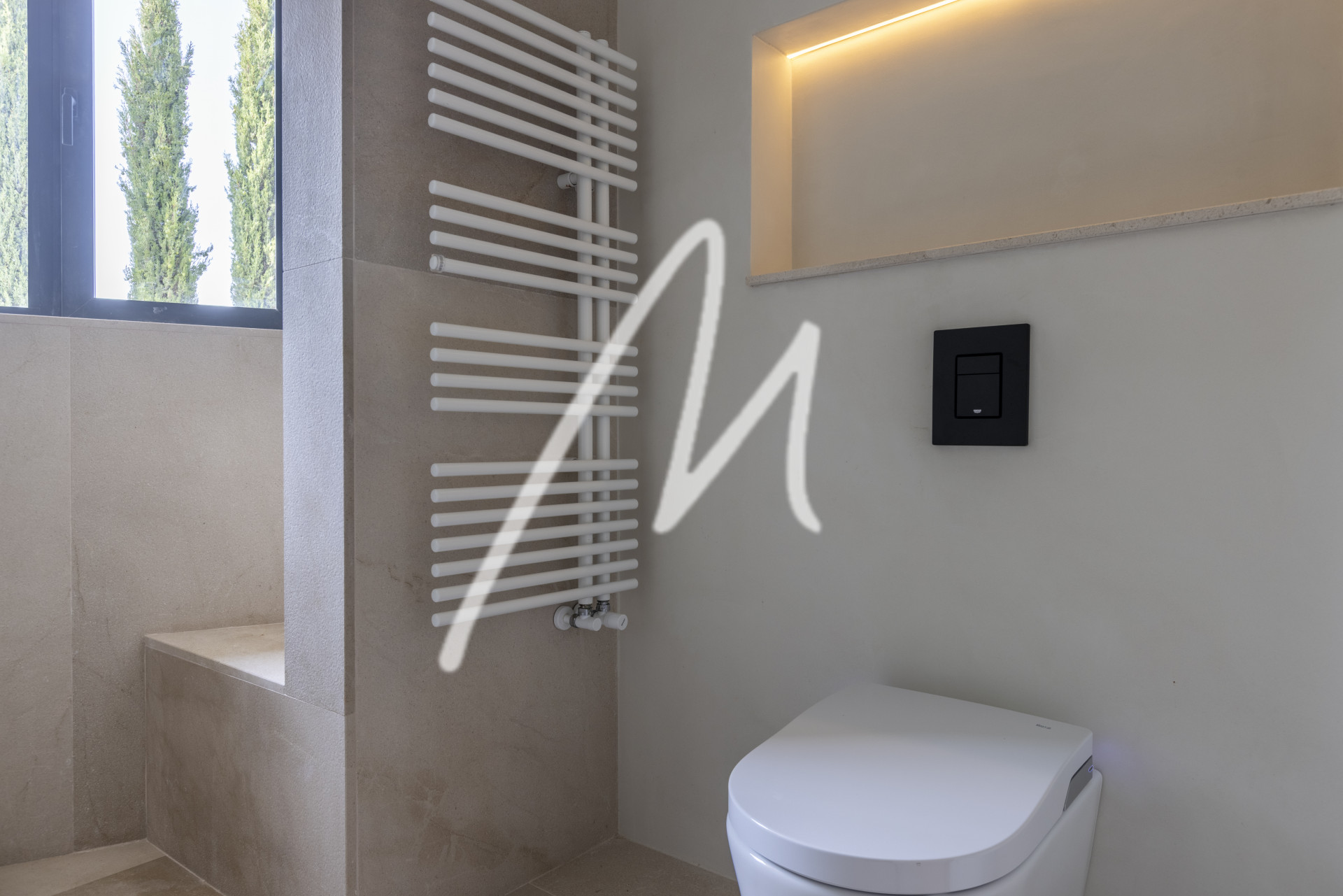 In terms of installations, the villa has an advanced Daikin heat pump system for the production of heating, cooling and domestic hot water: On the ground floor, Daikin underfloor heating and fan coils have been installed.