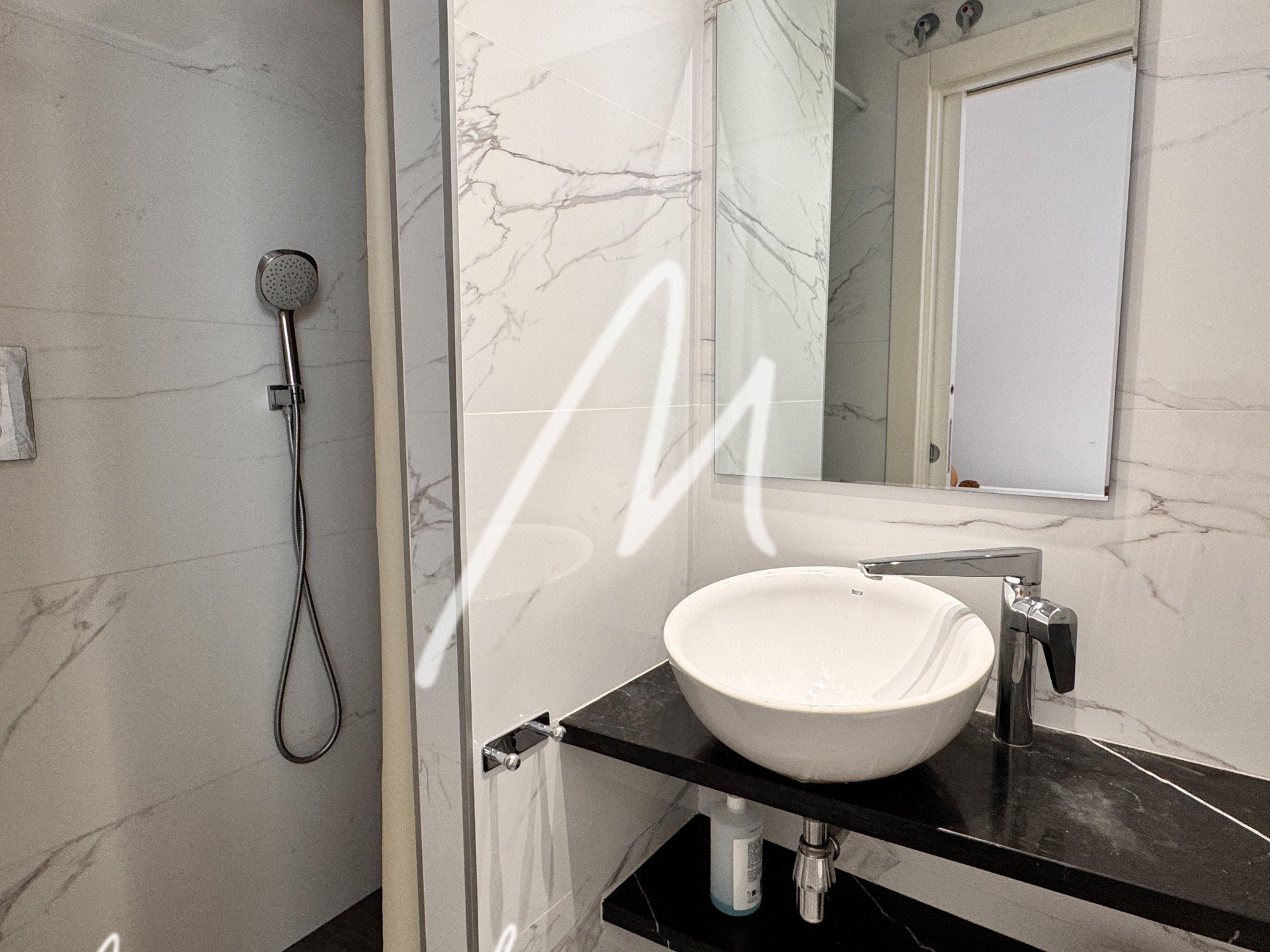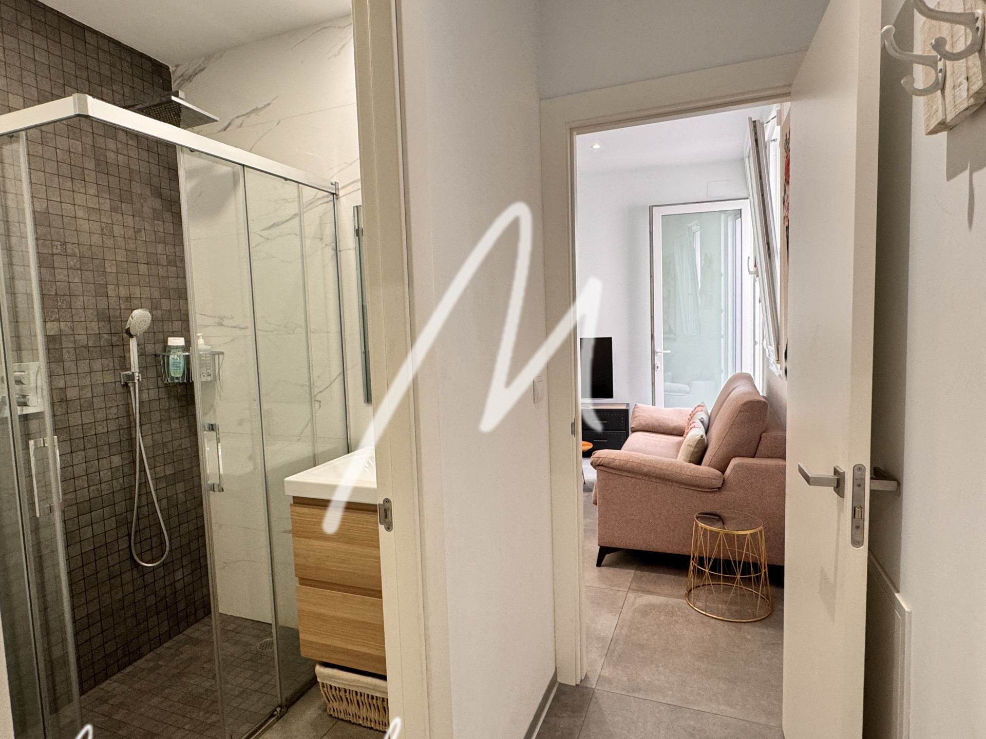 The modern and functional design of the renovation is appreciated in every detail, with large-format porcelain floors, safety windows, electric blinds and double glazing, ensuring energy efficiency and comfort. Among the qualities and equipment are the underfloor heating with aerotermia. The property is delivered fully furnished and equipped, including fiber optic internet and an office or room with separate access, ideal for telework or as a separate apartment or office.