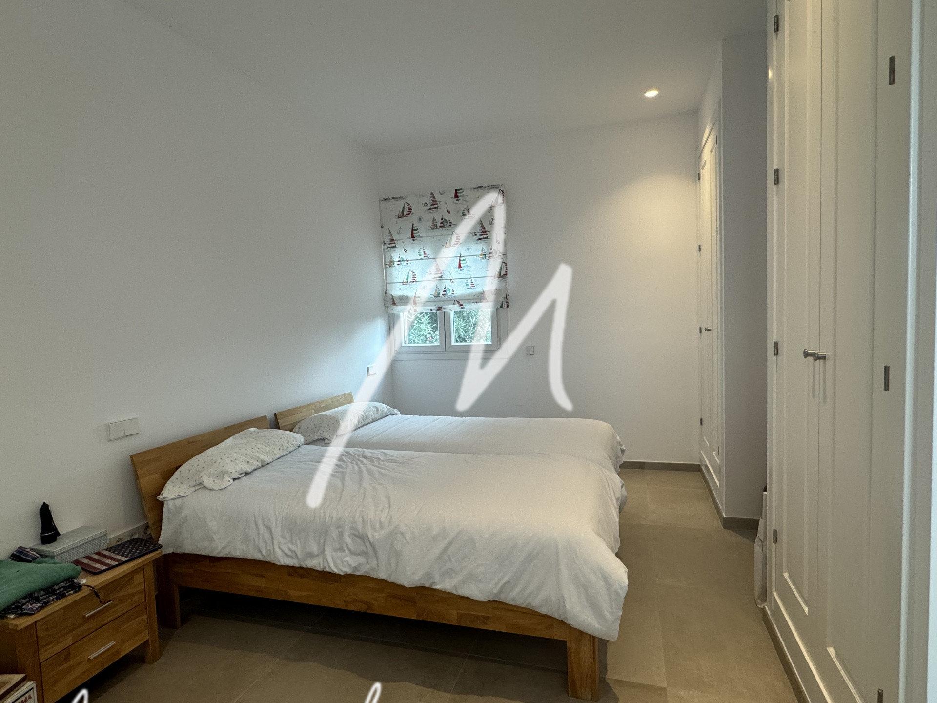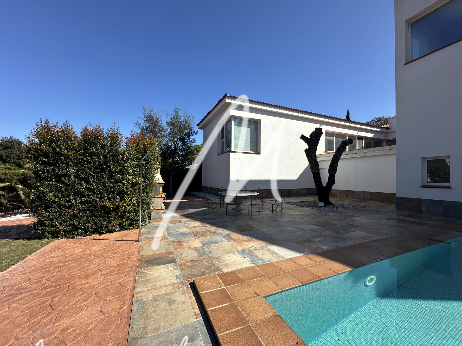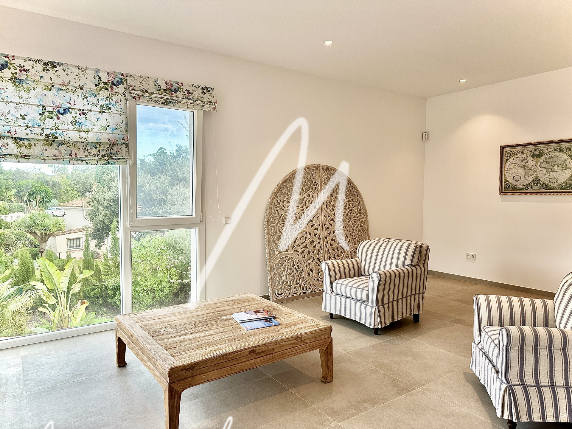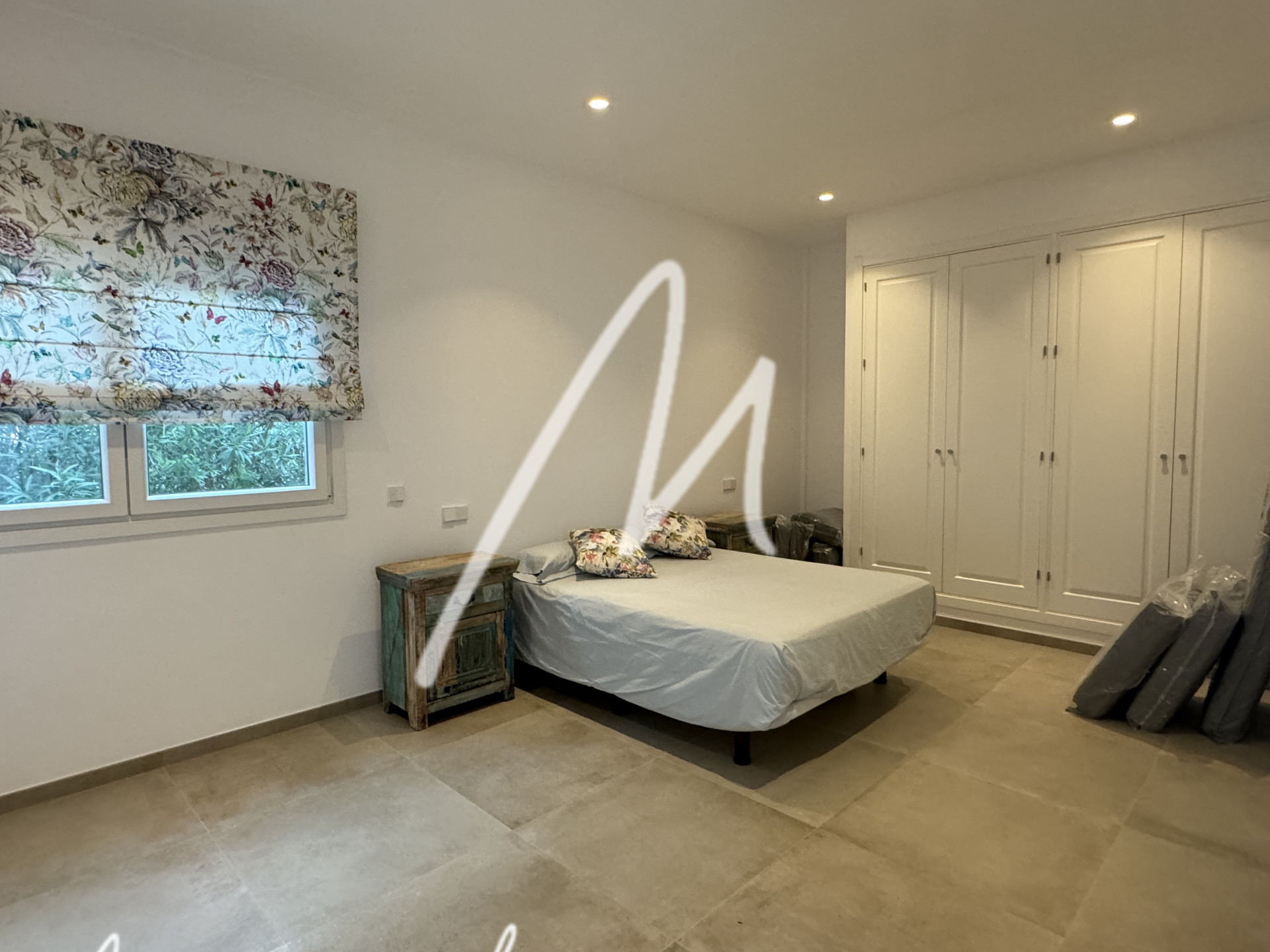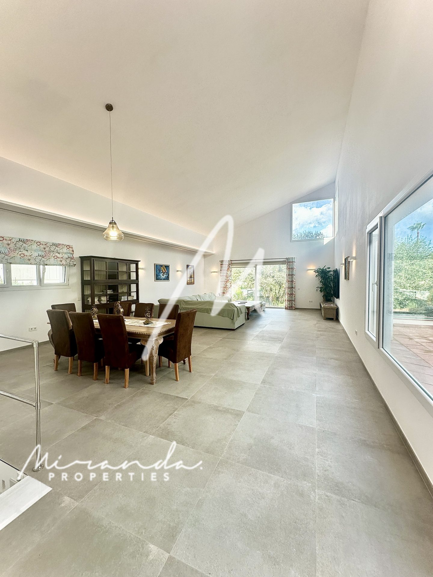 The villa is distributed over two floors, with the main floor organized around the central courtyard to ensure optimal sunlight in all rooms. Featuring a spacious high-ceiling living room, it includes 4 large bedrooms with en-suite bathrooms, as well as an additional guest toilet, ensuring comfort and privacy for all occupants. The fully equipped kitchen is designed to meet the most demanding needs and also includes an independent laundry room. The lower floor features a large multipurpose room with access to the saltwater pool, garden, and barbecue area, ideal for enjoying the Mediterranean climate. Additionally, there is a spacious storage room, providing practical storage solutions.
