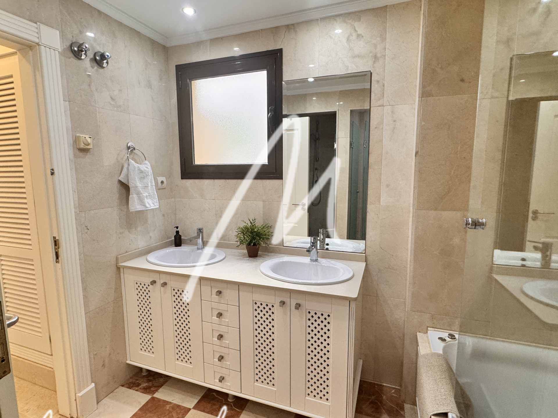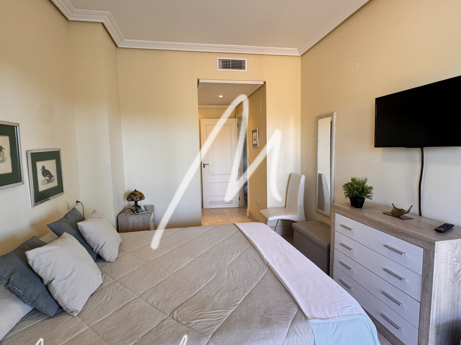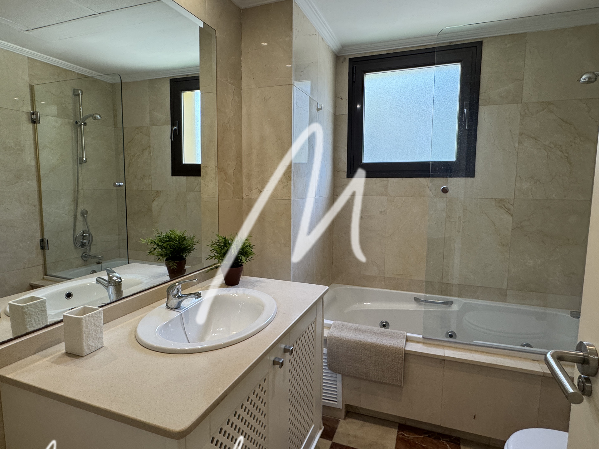 The two bedrooms are spacious and bright, each with fitted wardrobes and the main one with en suite bathroom, which guarantees privacy and comfort. The bathrooms are decorated with high quality finishes and a contemporary design.
