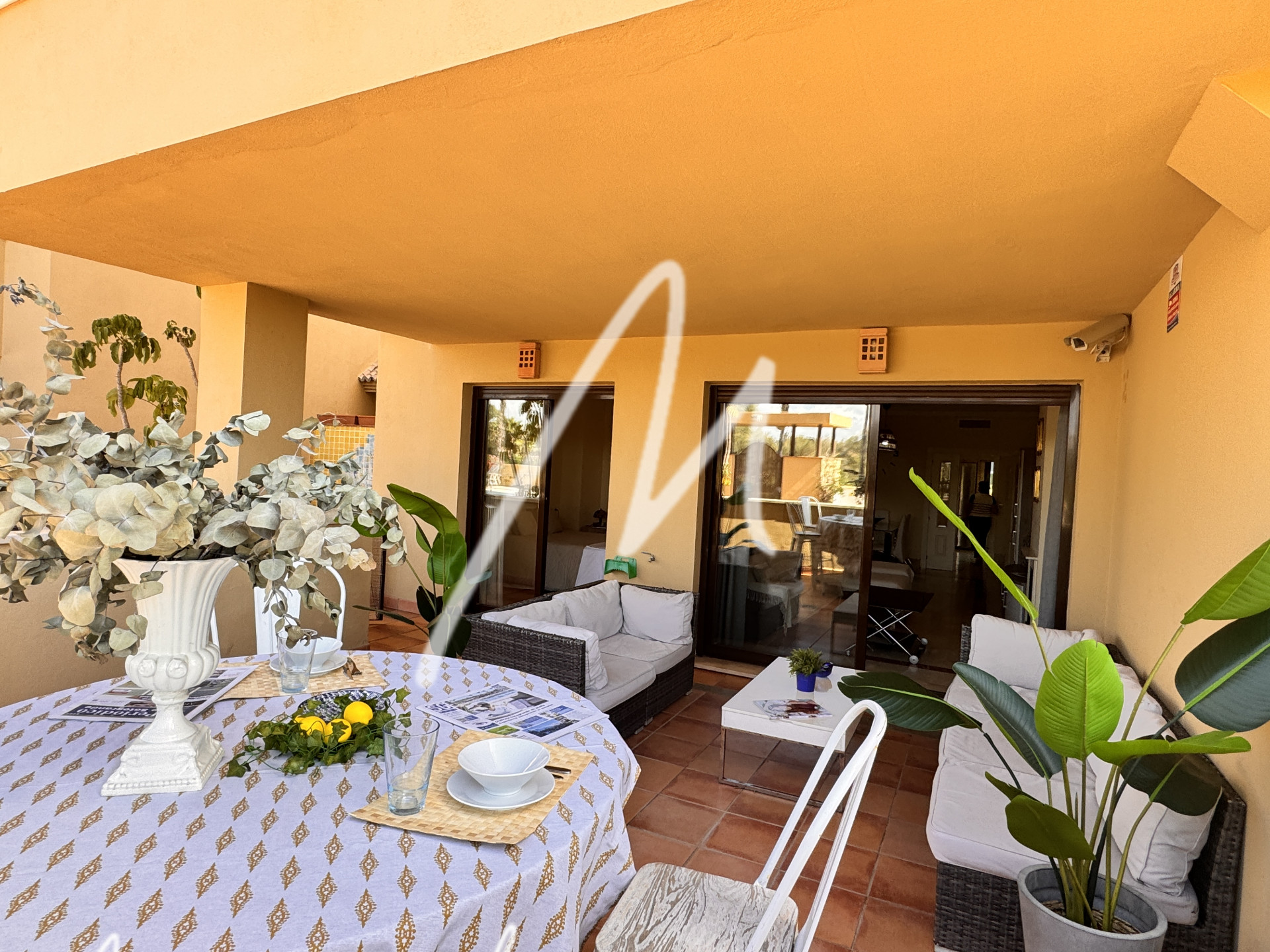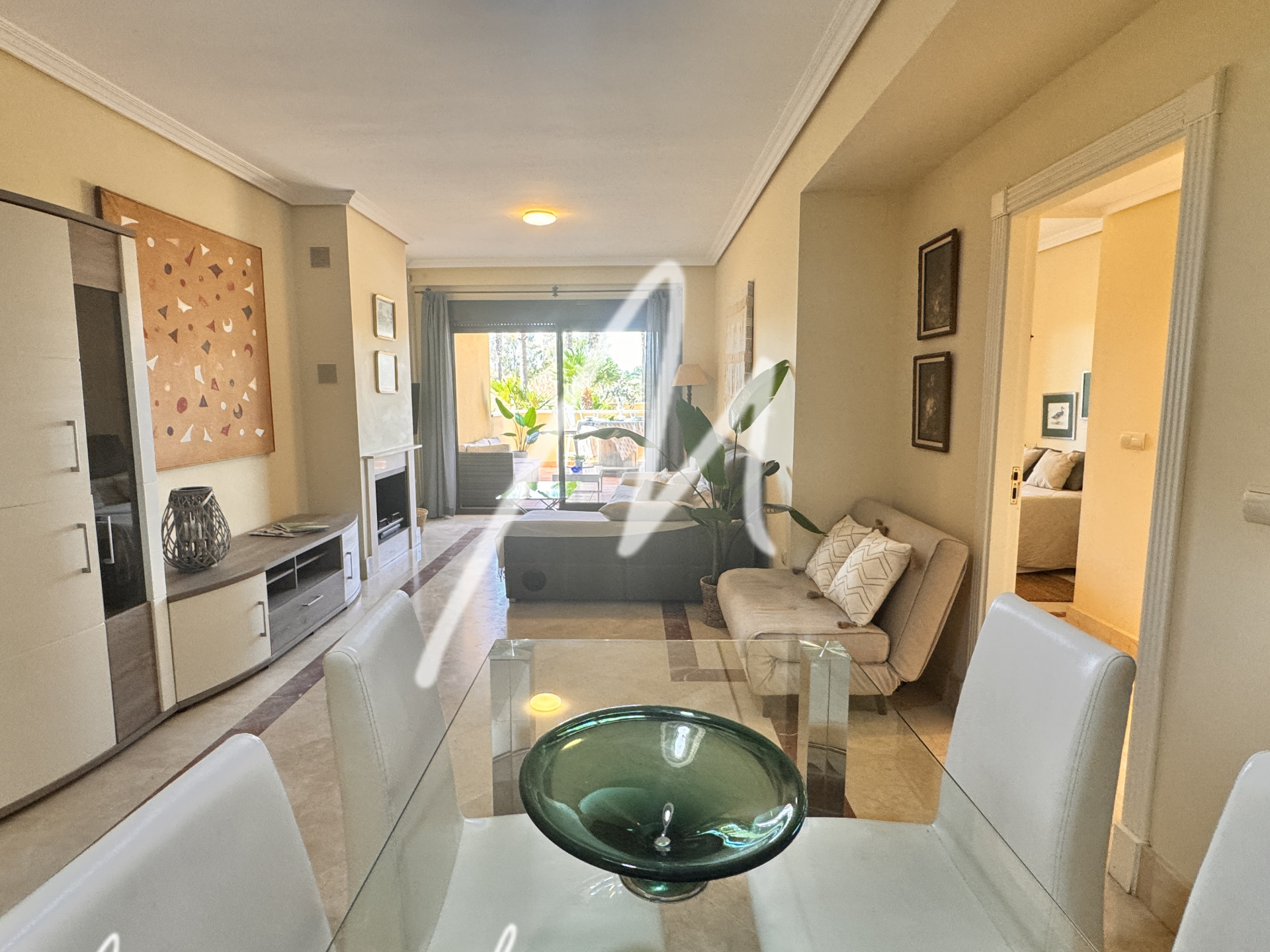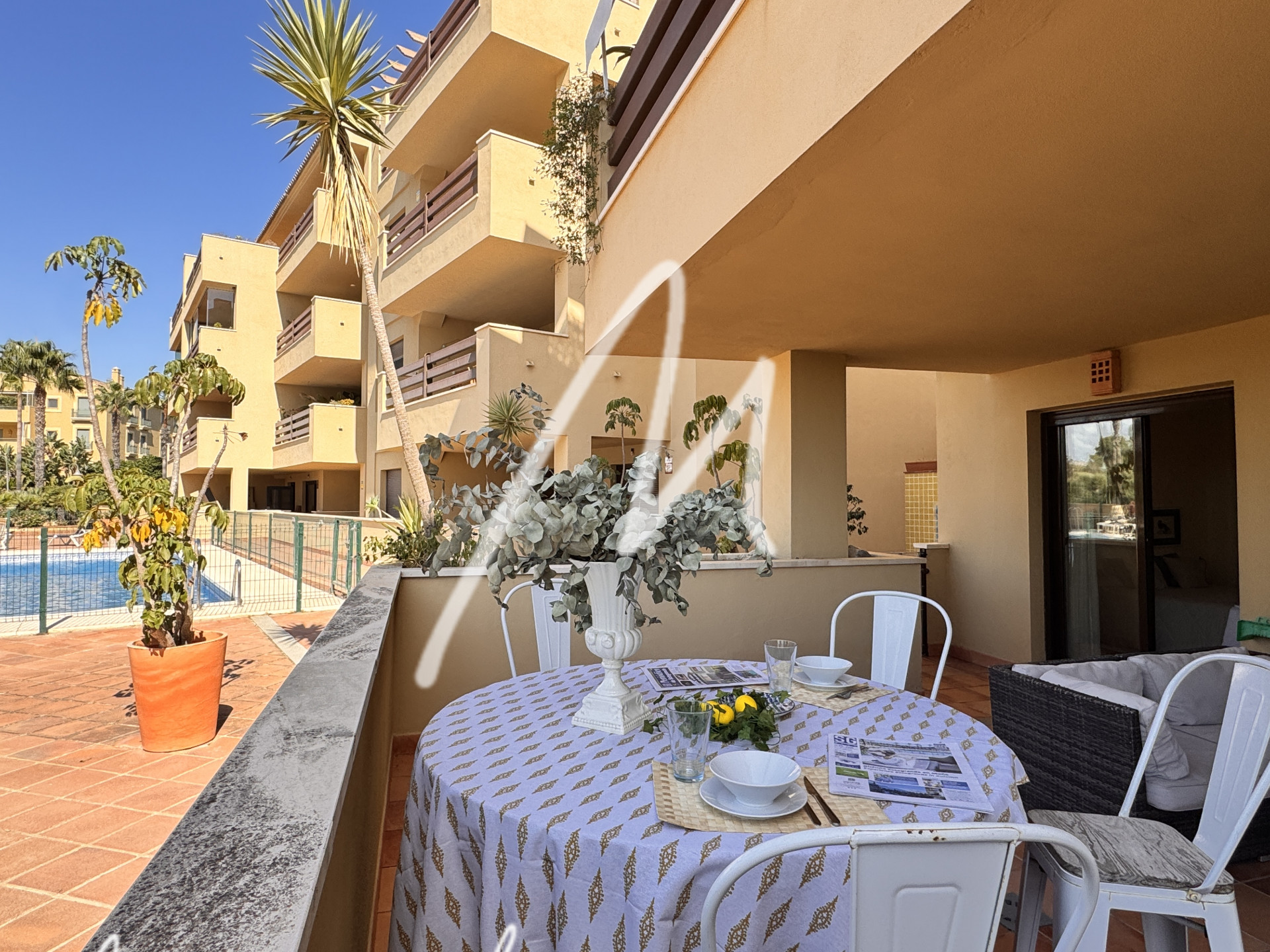 This charming 2 bedroom and 2 bathroom apartment, designed to provide a comfortable life, has a large living room with direct access to the terrace and from there to the communal pool.