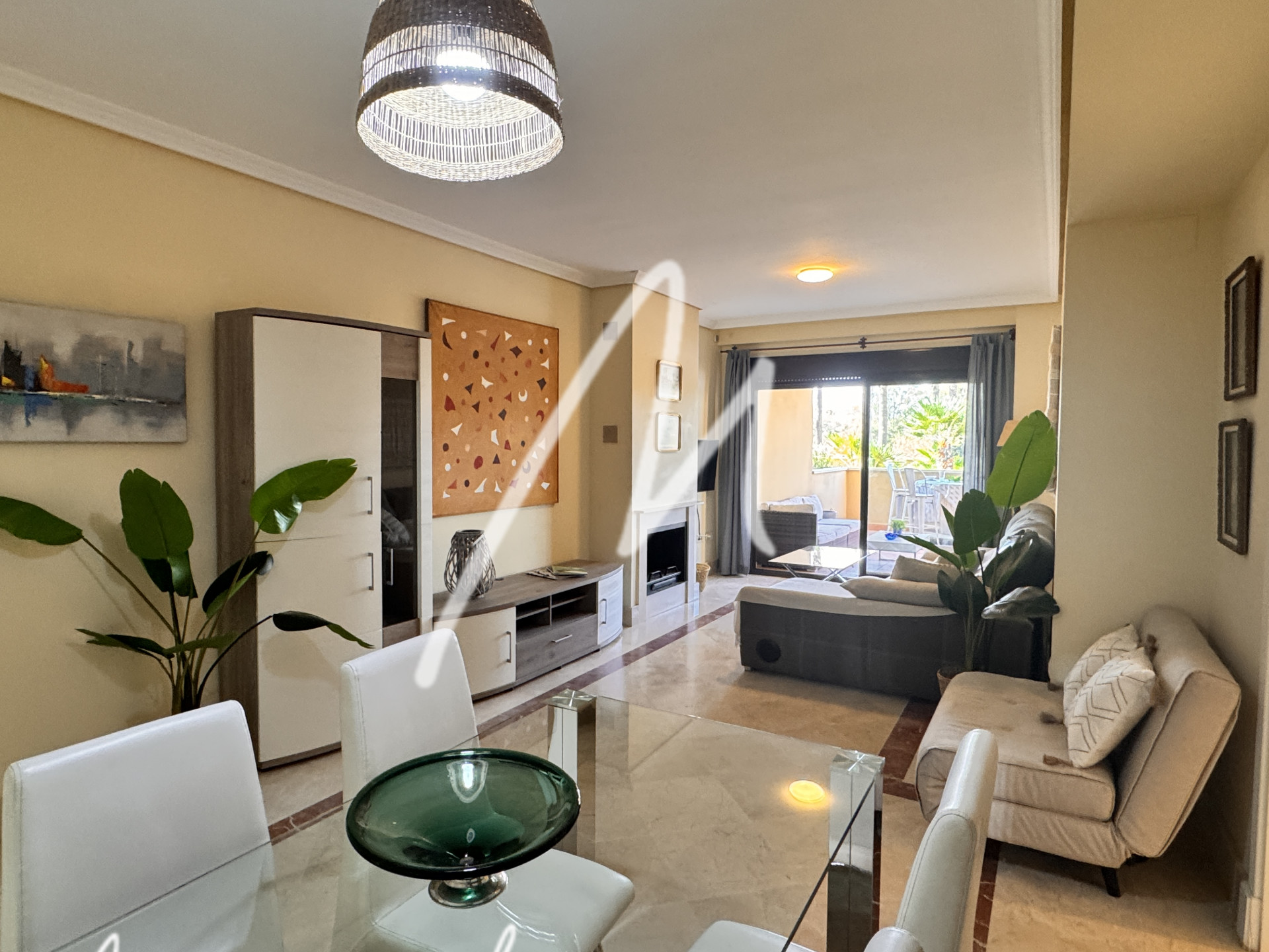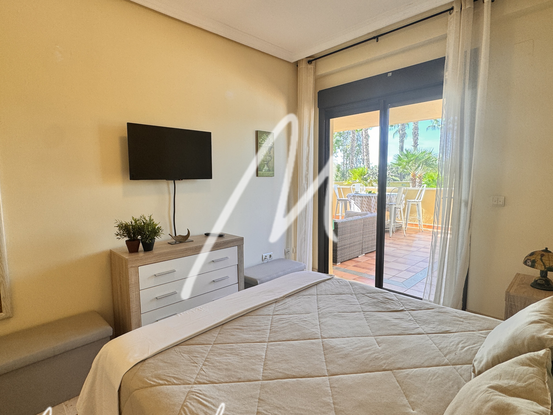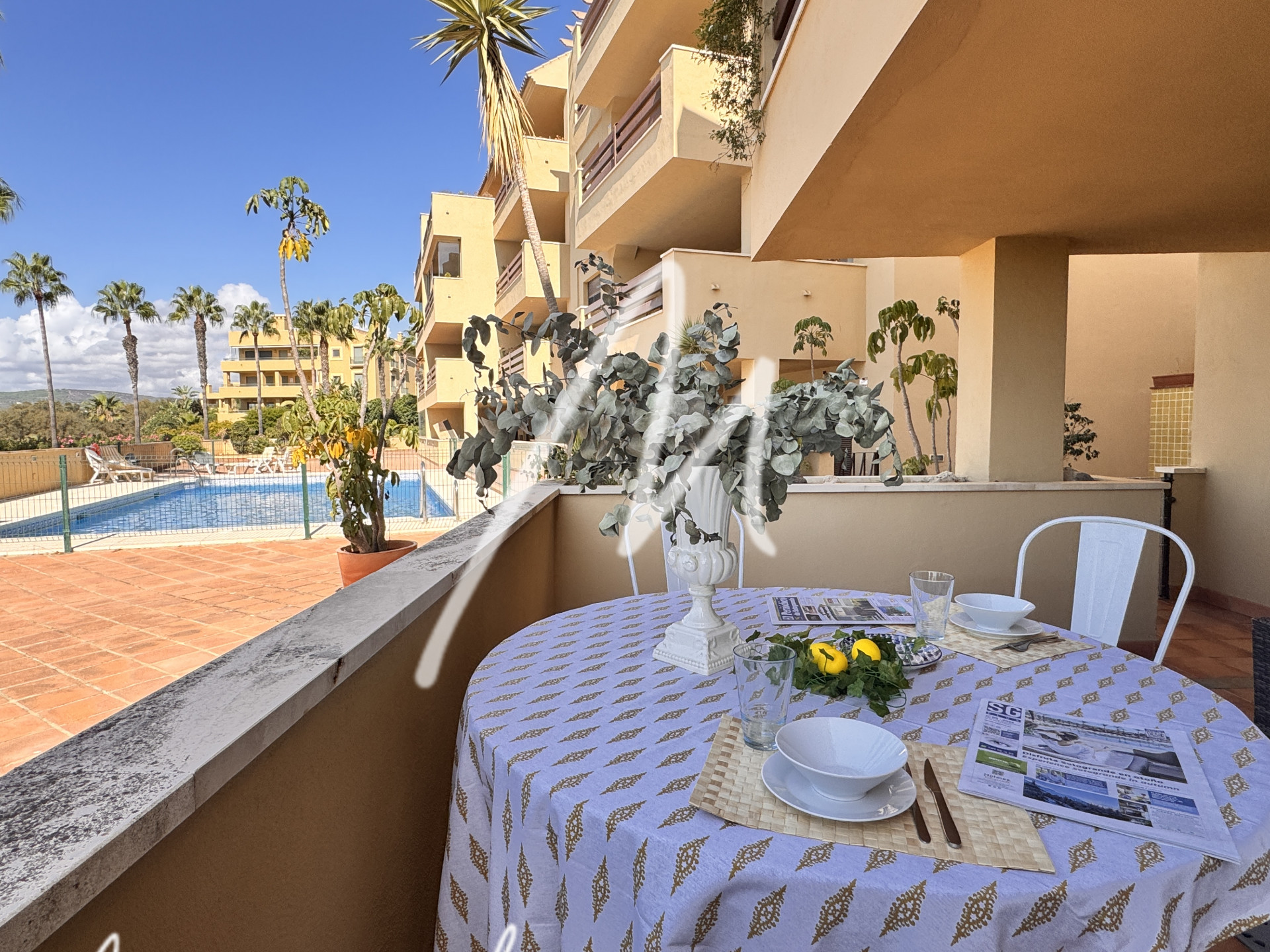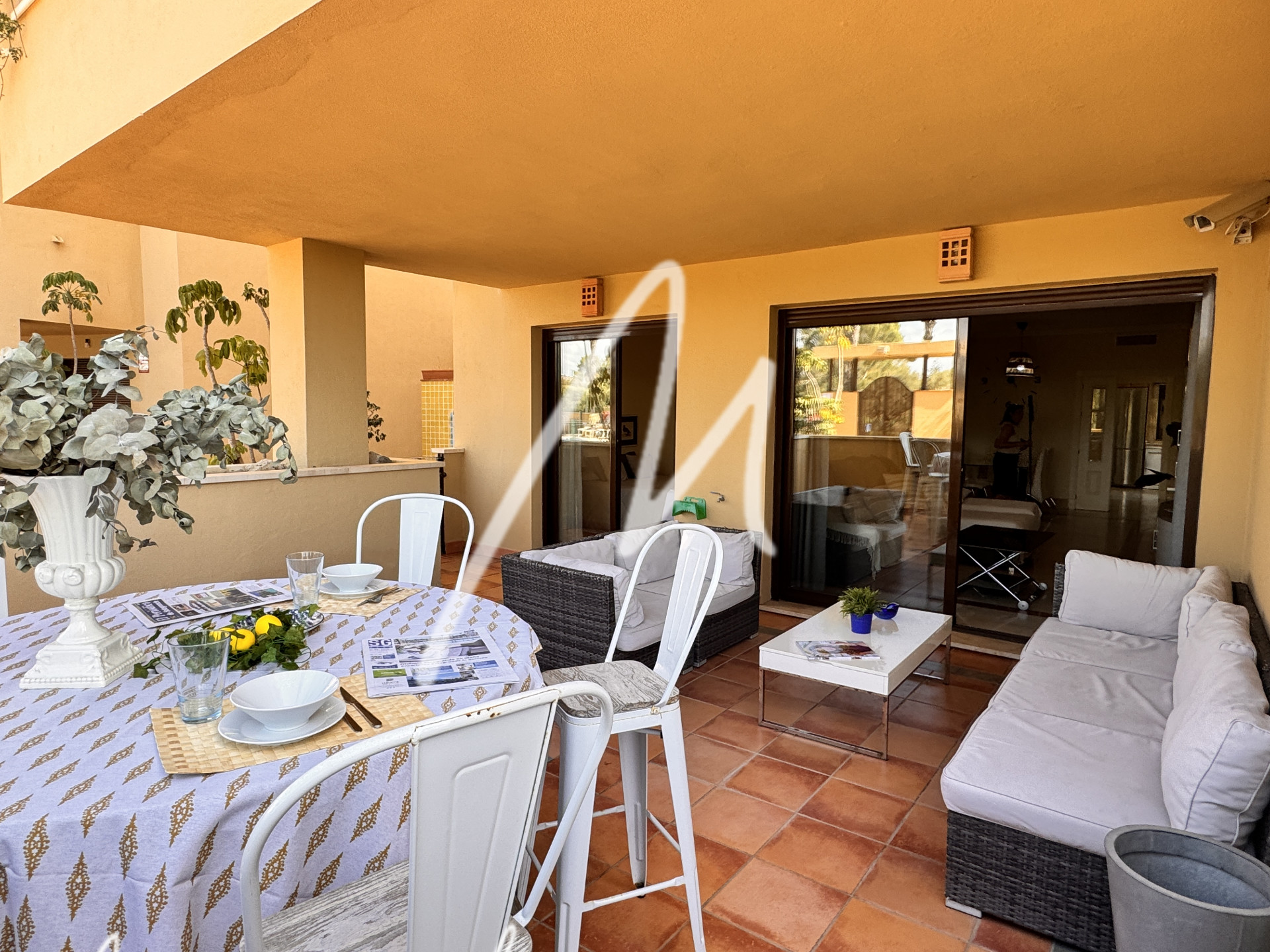 This charming 2 bedroom and 2 bathroom apartment, designed to provide a comfortable life, has a large living room with direct access to the terrace and from there to the communal pool.