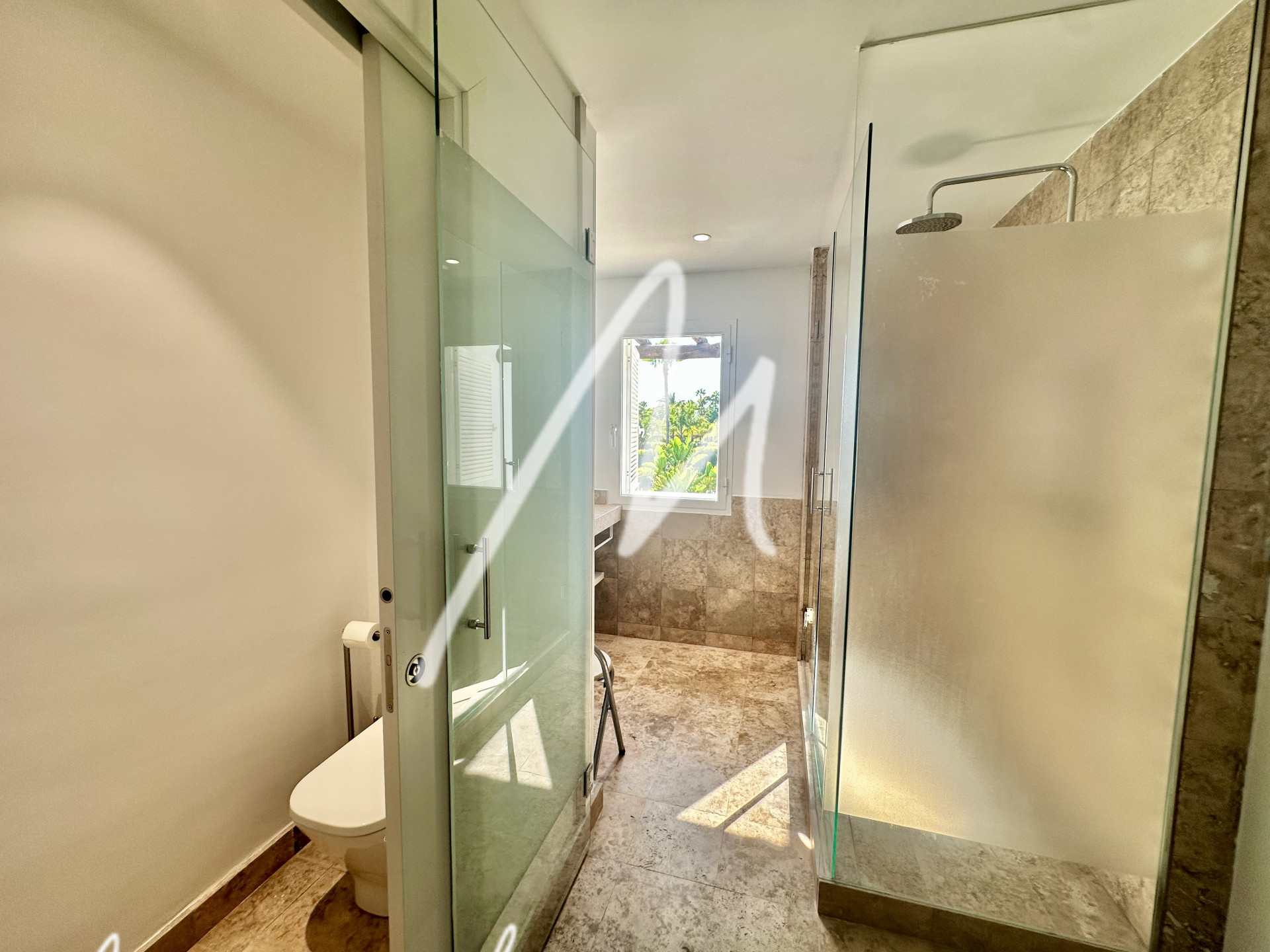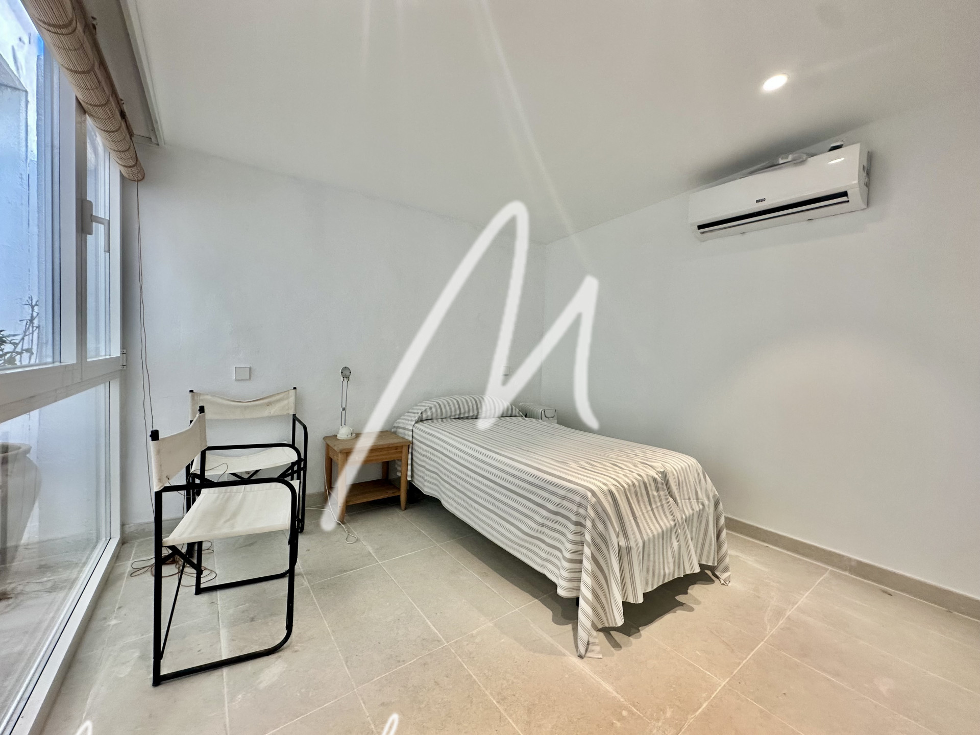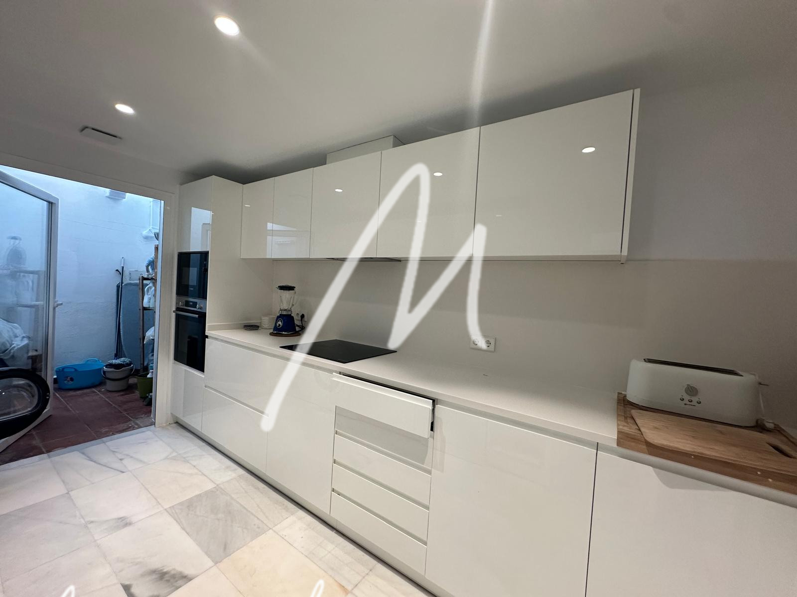 La vivienda se ha ido renovando con calidades top: cocina completa con BOSCH y salida ampliada, mármol Blanco Macael en dormitorios y cocina, electricidad y fontanería nuevas, mecanismos JUNG LS990, LED en toda la iluminación, baños rediseñados con extracción forzada, y climatización por bomba de calor (vivienda principal + suite independiente).