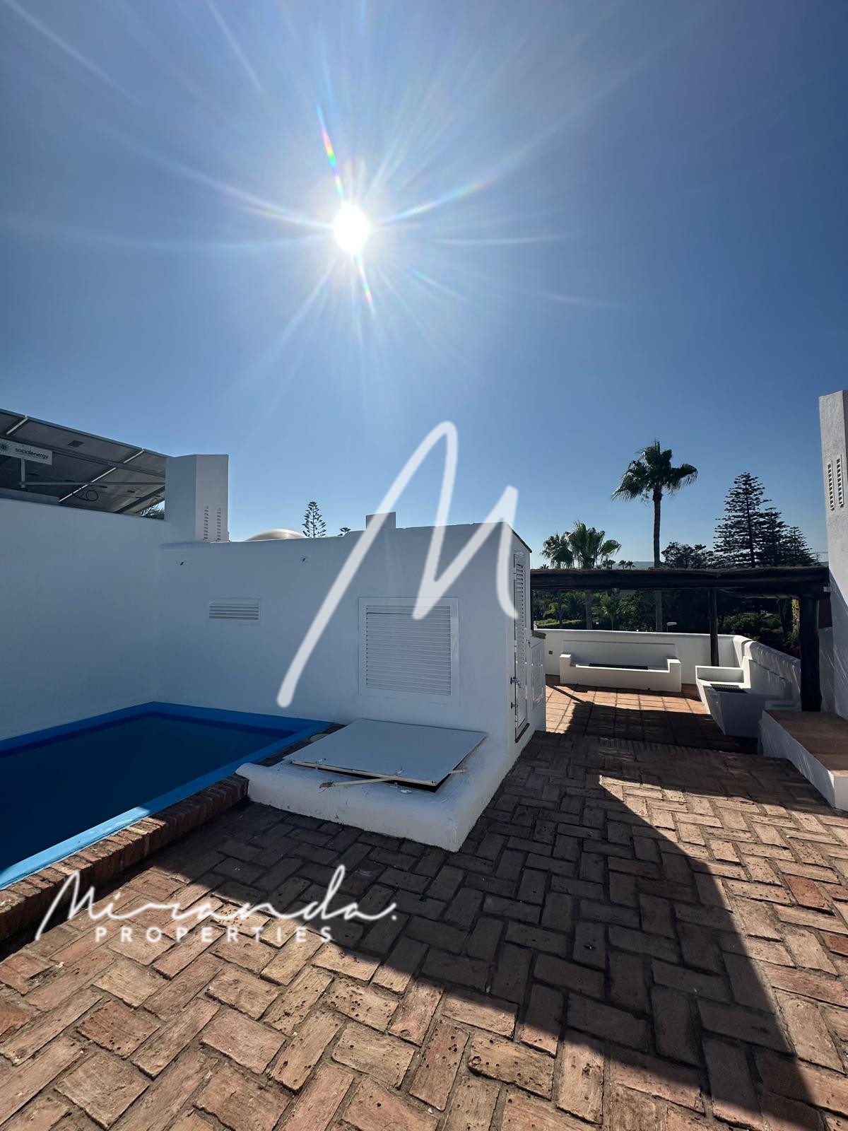 Adosado de 204 m², 2 plantas mas solarium, orientación sur/oeste, con porche privado y piscina en el solarium. Distribuida en 5 dormitorios, 5 baños en suite + 1 aseo. Unos de los dormitorios es independiente con baño, acceso propio y frente acristalado, ideal para invitados, servicio o incluso despacho.
