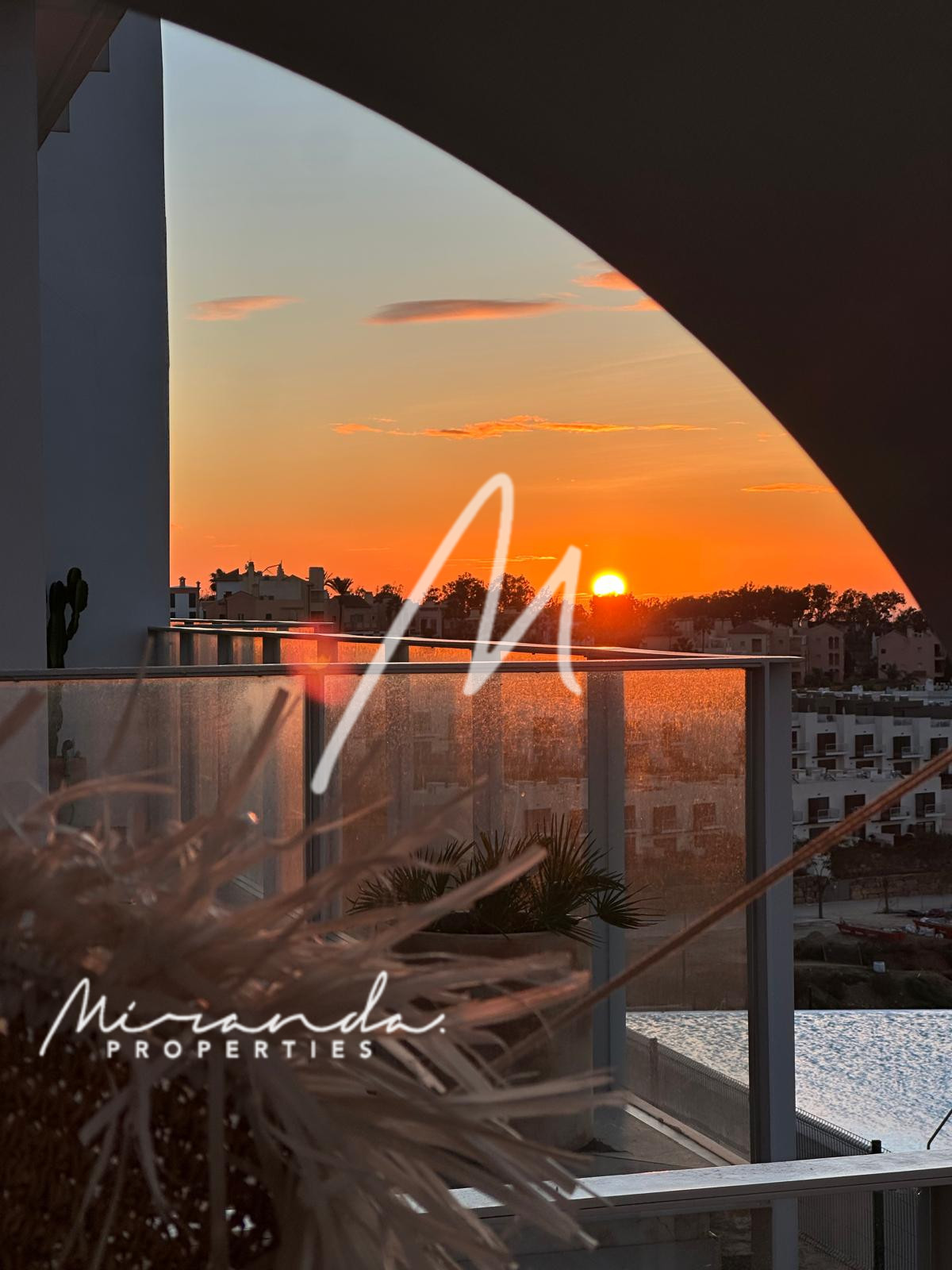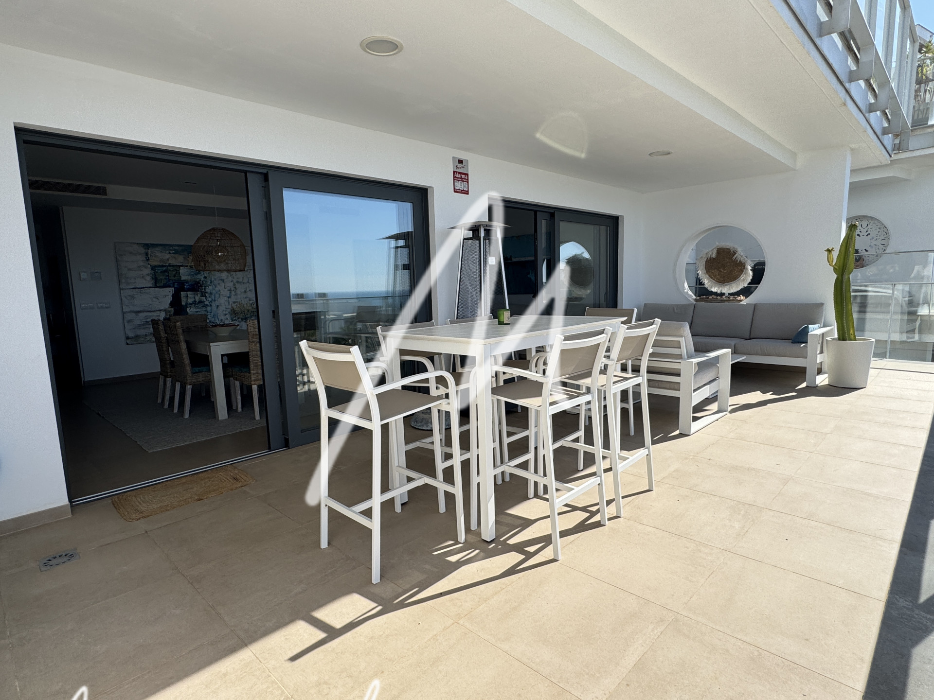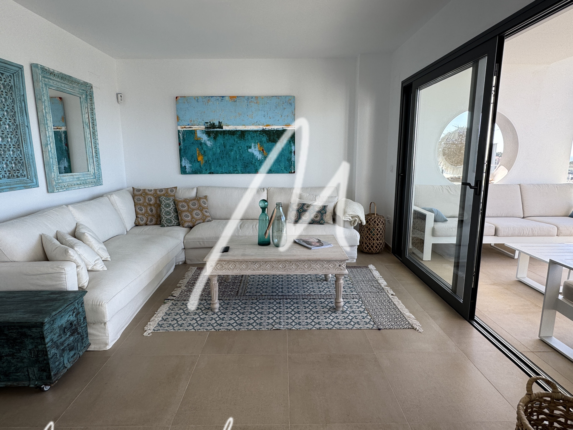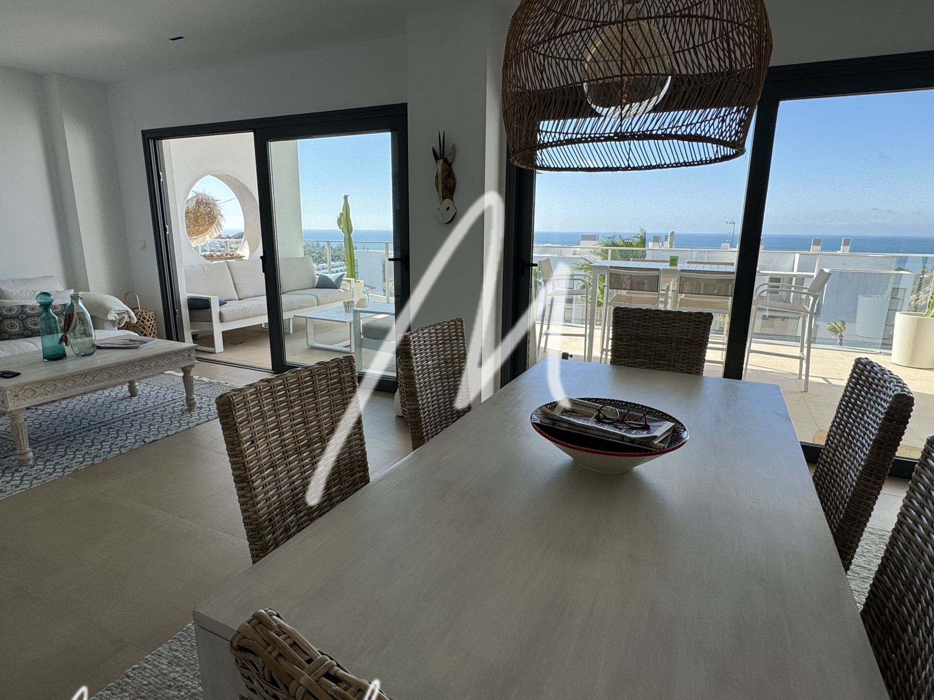Moderno y luminoso apartamento de 3 dormitorios y 2 baños en urbanización privada con piscina, gimnasio y zona infantil. Ubicado en esquina de edificio, con orientación sur y espectacular terraza cubierta de 43 m² con vistas al mar y Gibraltar.