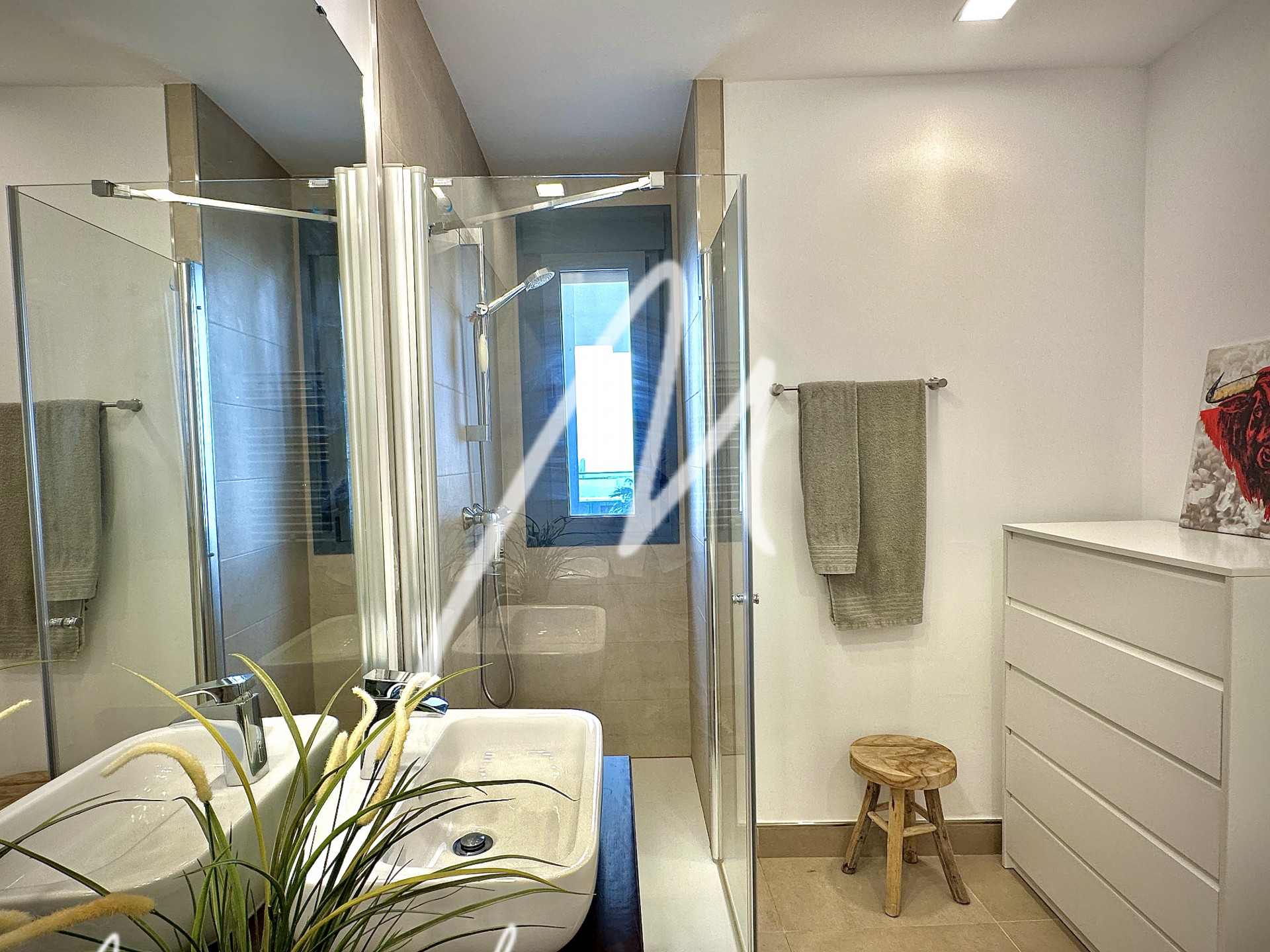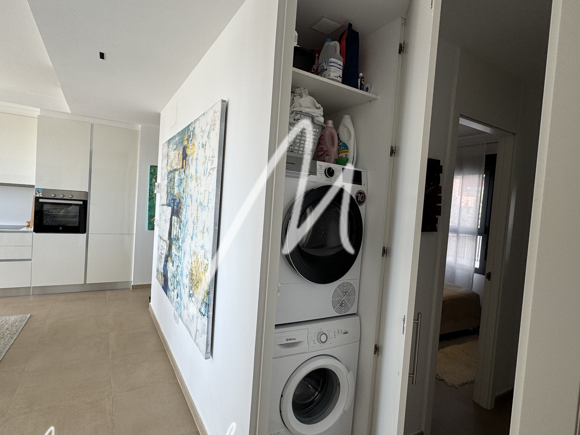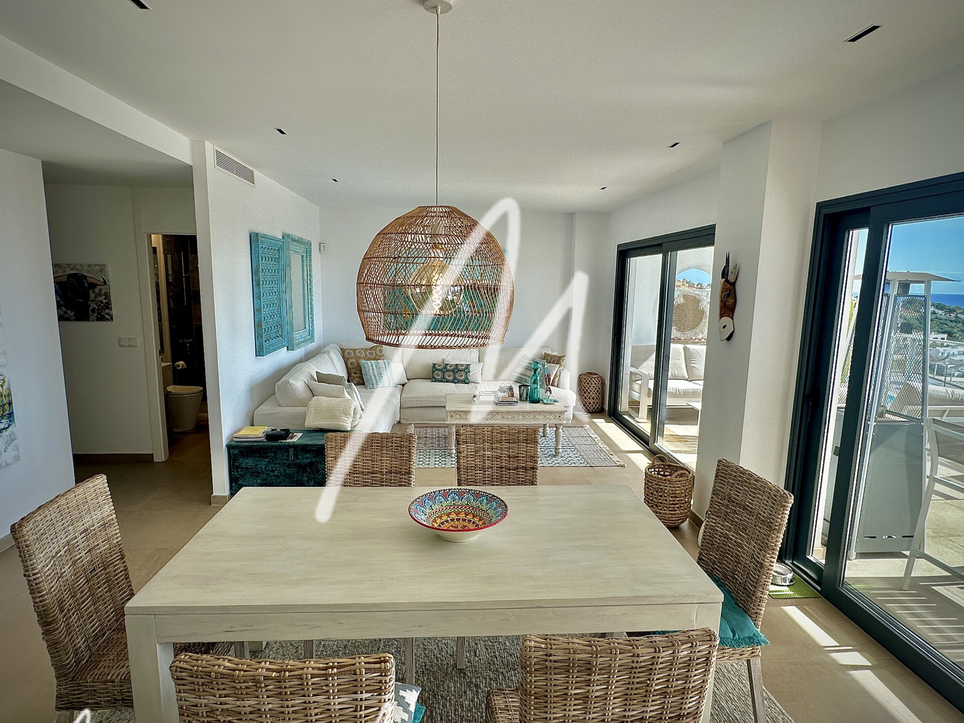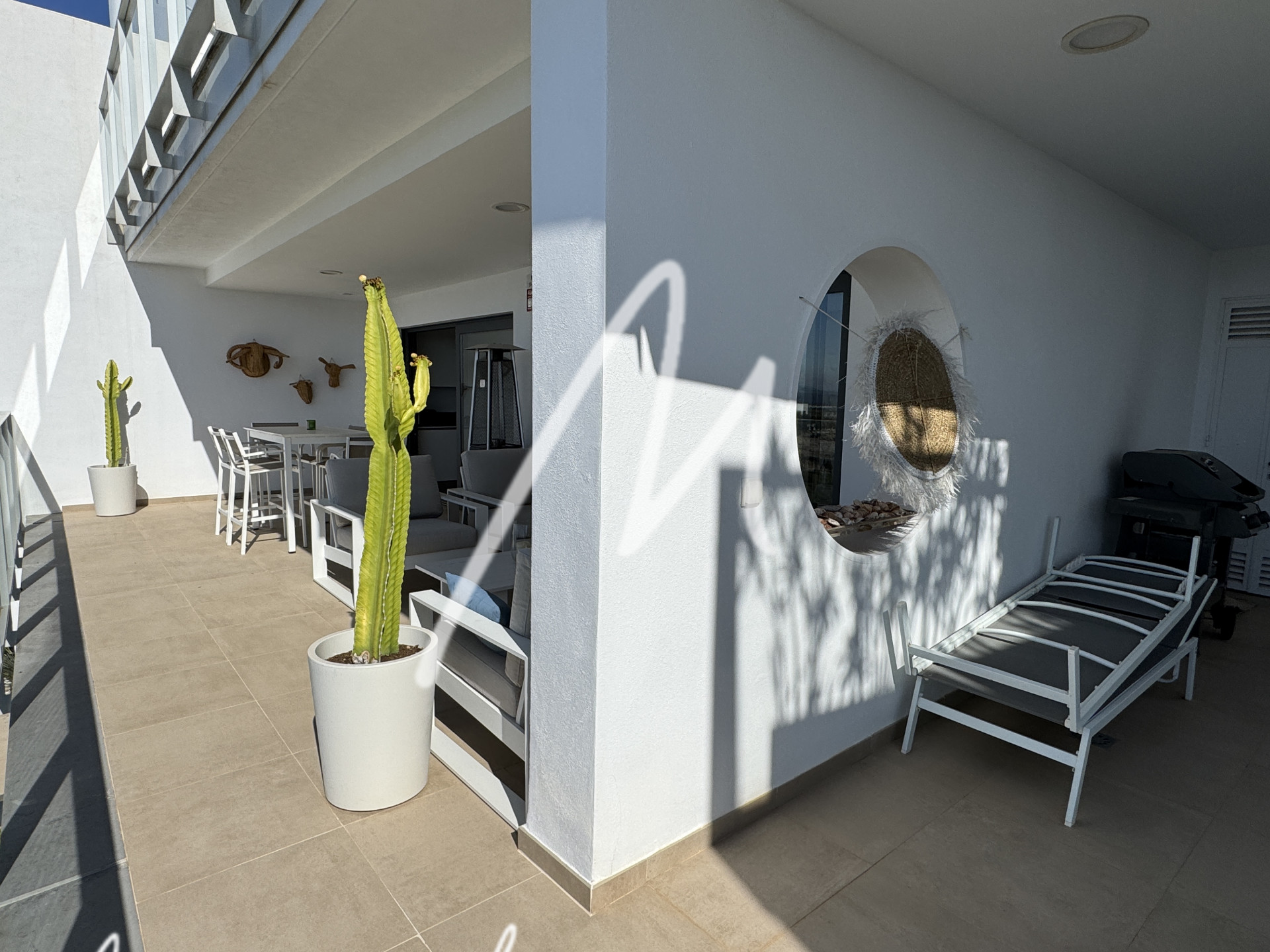 Moderno y luminoso apartamento de 3 dormitorios y 2 baños en urbanización privada con piscina, gimnasio y zona infantil. Ubicado en esquina de edificio, con orientación sur y espectacular terraza cubierta de 43 m² con vistas al mar y Gibraltar.