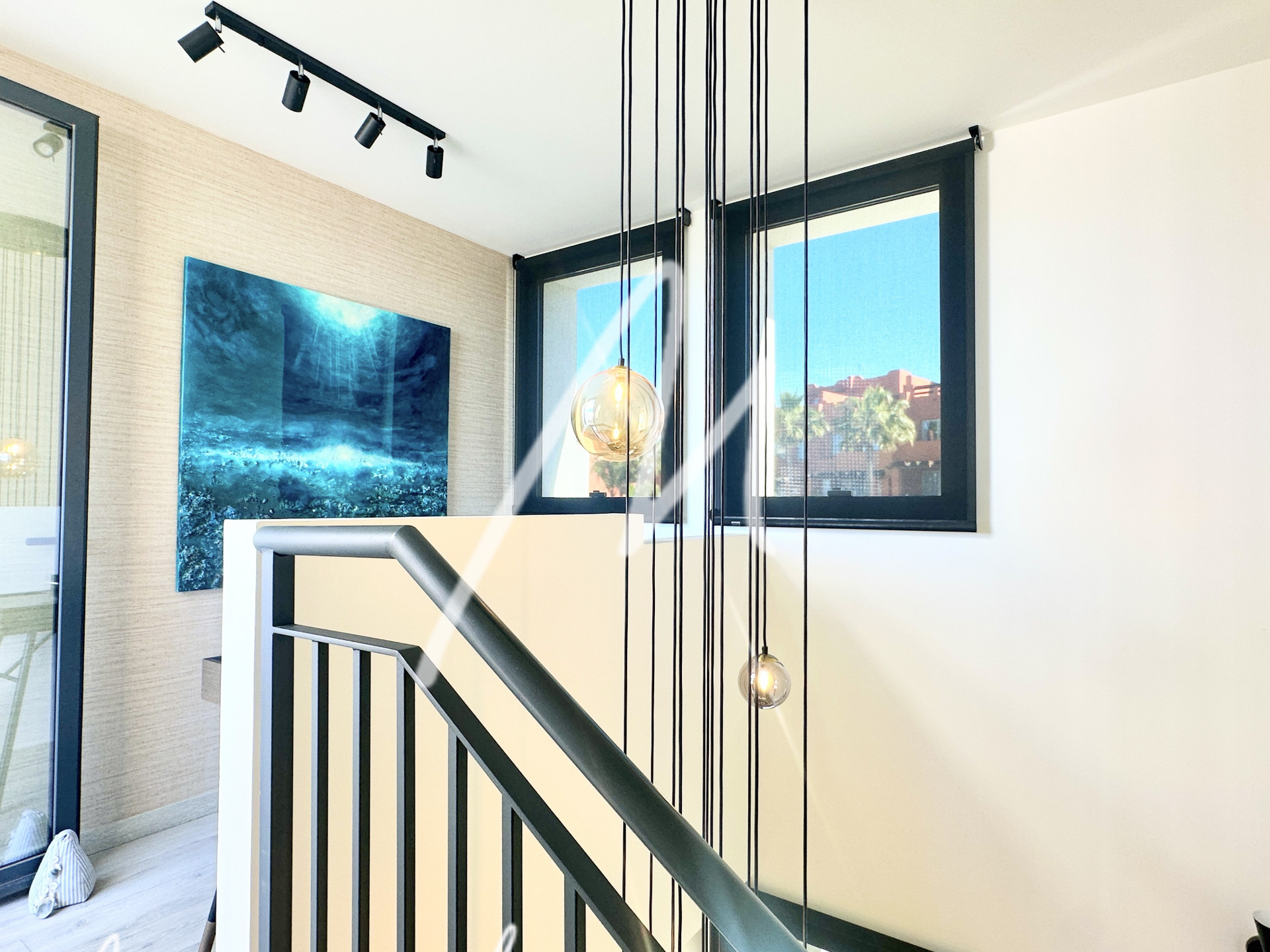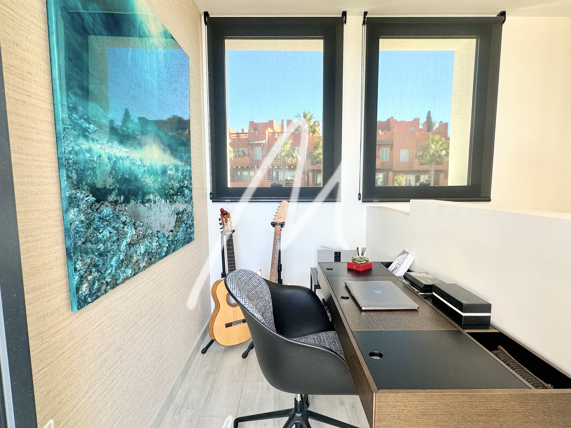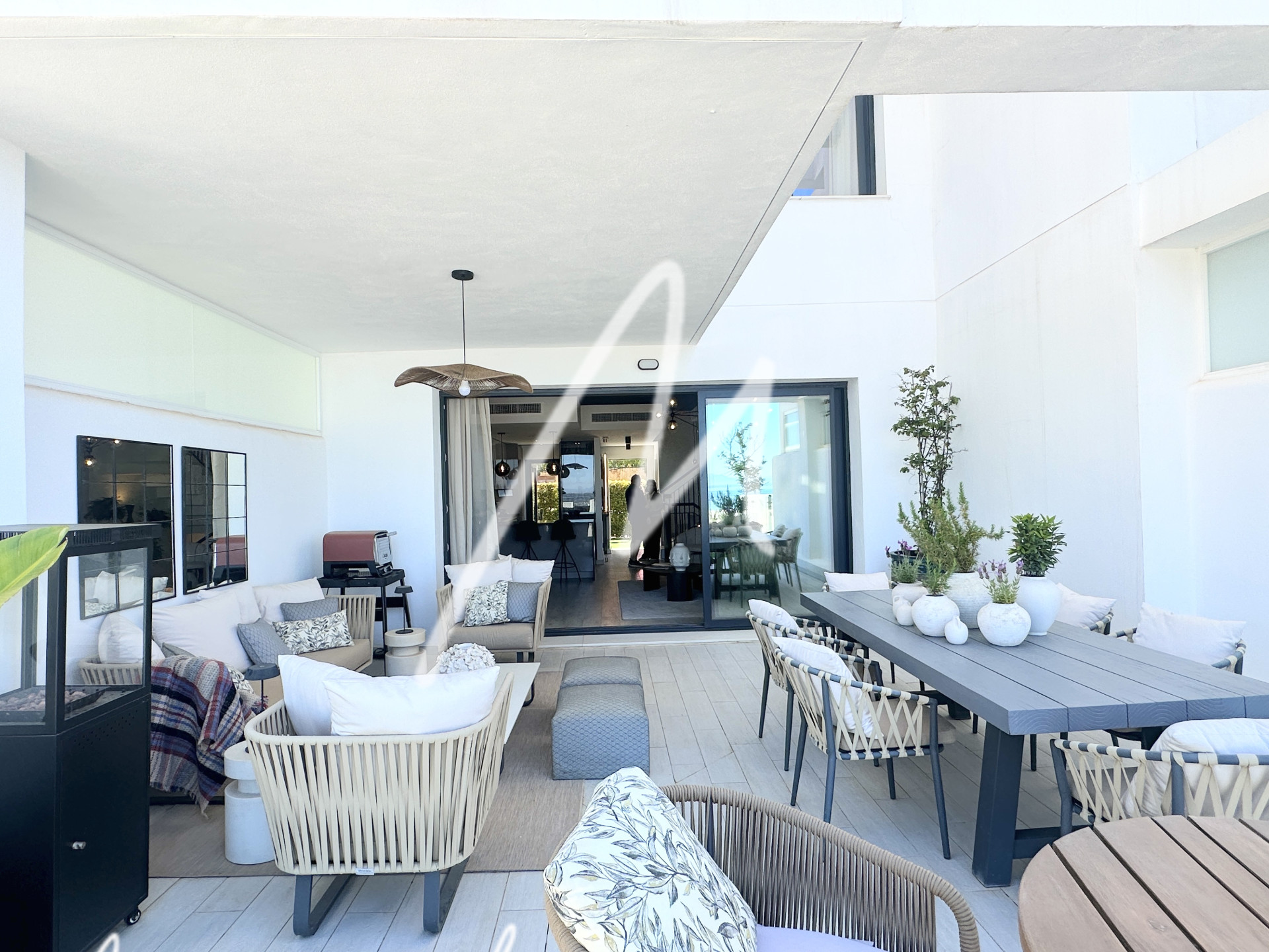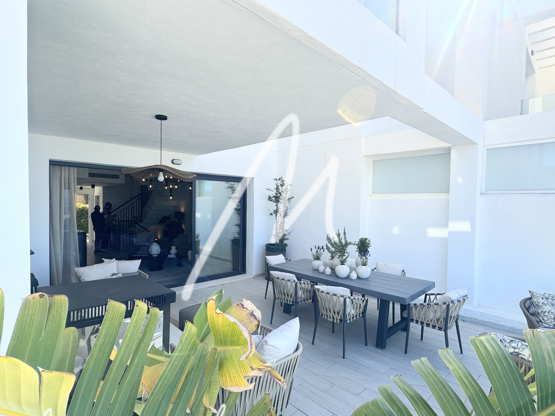 Ubicada en una urbanización moderna y cuidada en Bahía de las Rocas, esta vivienda destaca por su estilo contemporáneo, privacidad y agradables vistas abiertas al mar Mediterráneo.
