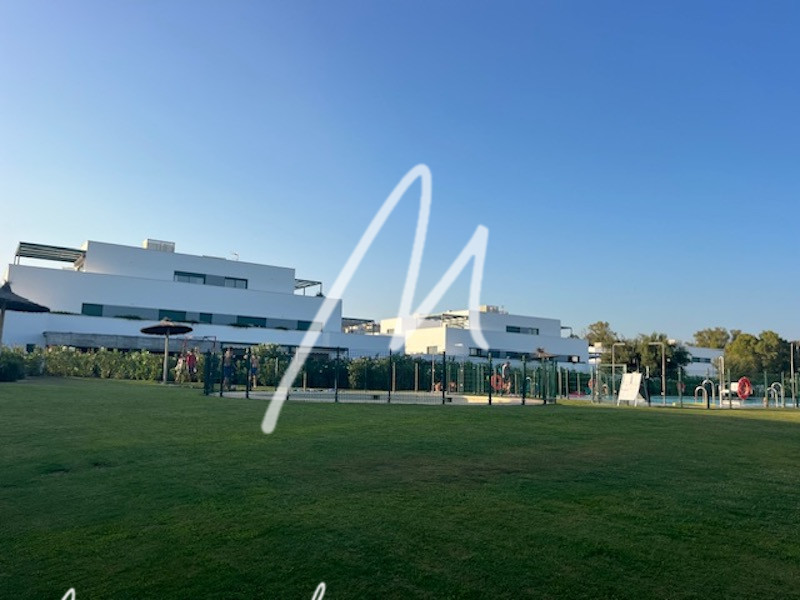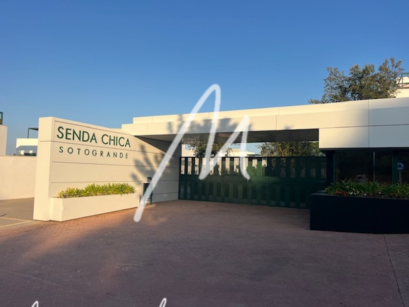 Apartamento planta baja con jardín privado en Sotogrande – Urb. Senda Chica (La Reserva), dentro de una urbanización con seguridad 24h, piscinas, pádel y gimnasio, rodeada de alcornoques y con orientación oeste y vistas despejadas.